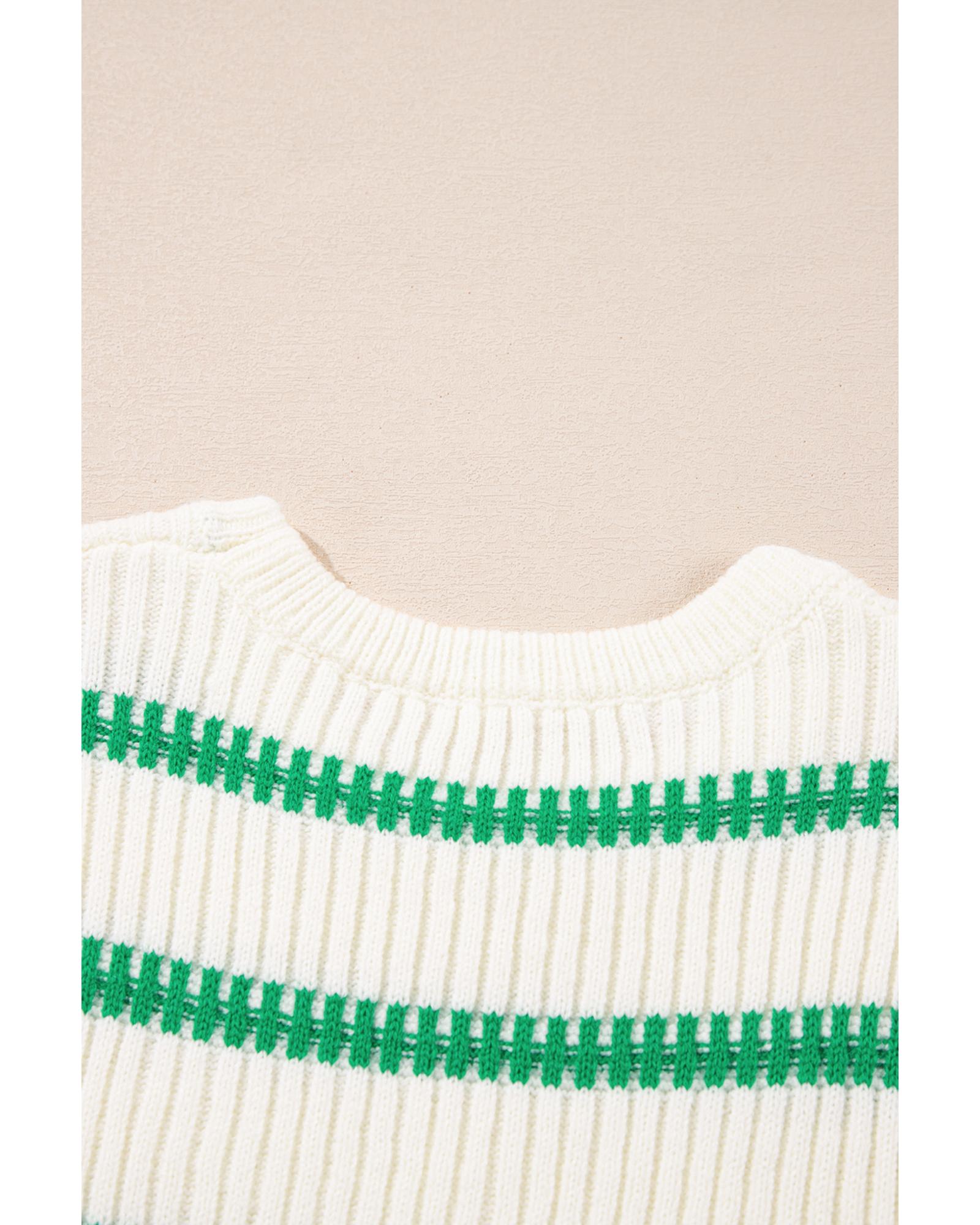 Bright Green Striped Round Neck Casual Sweater Vest – L