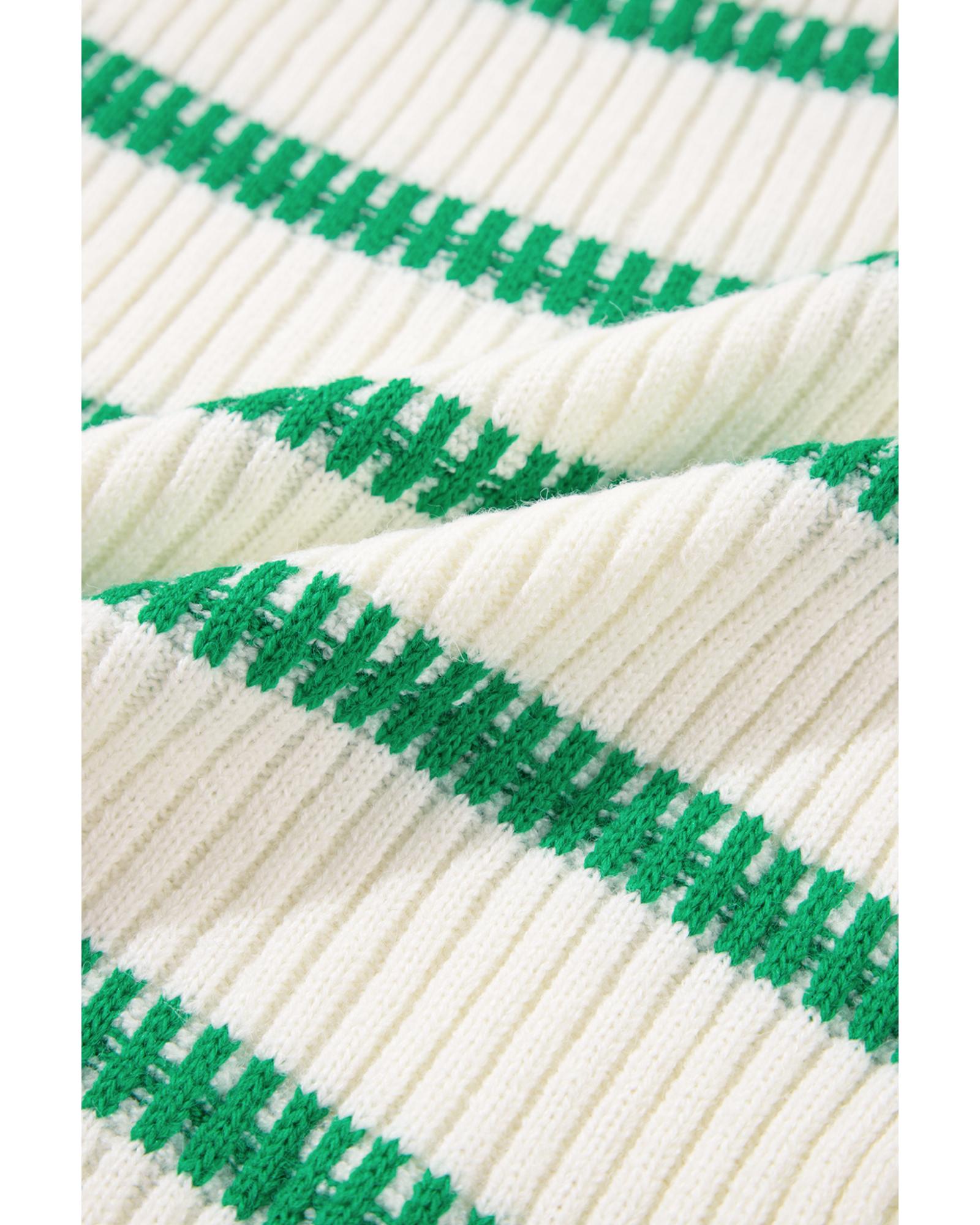 - Features a bright green striped pattern with a round neckline