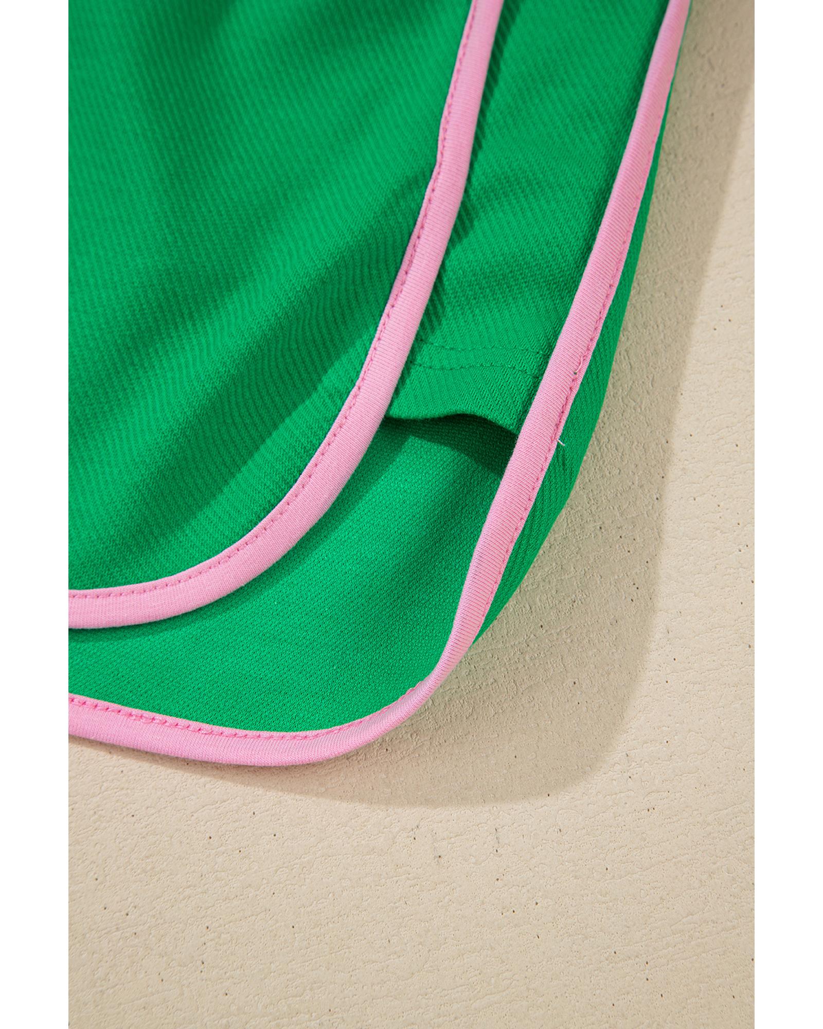 Bright Green Two Tone Contrast Textured Crewneck Tee and Shorts Set – XL