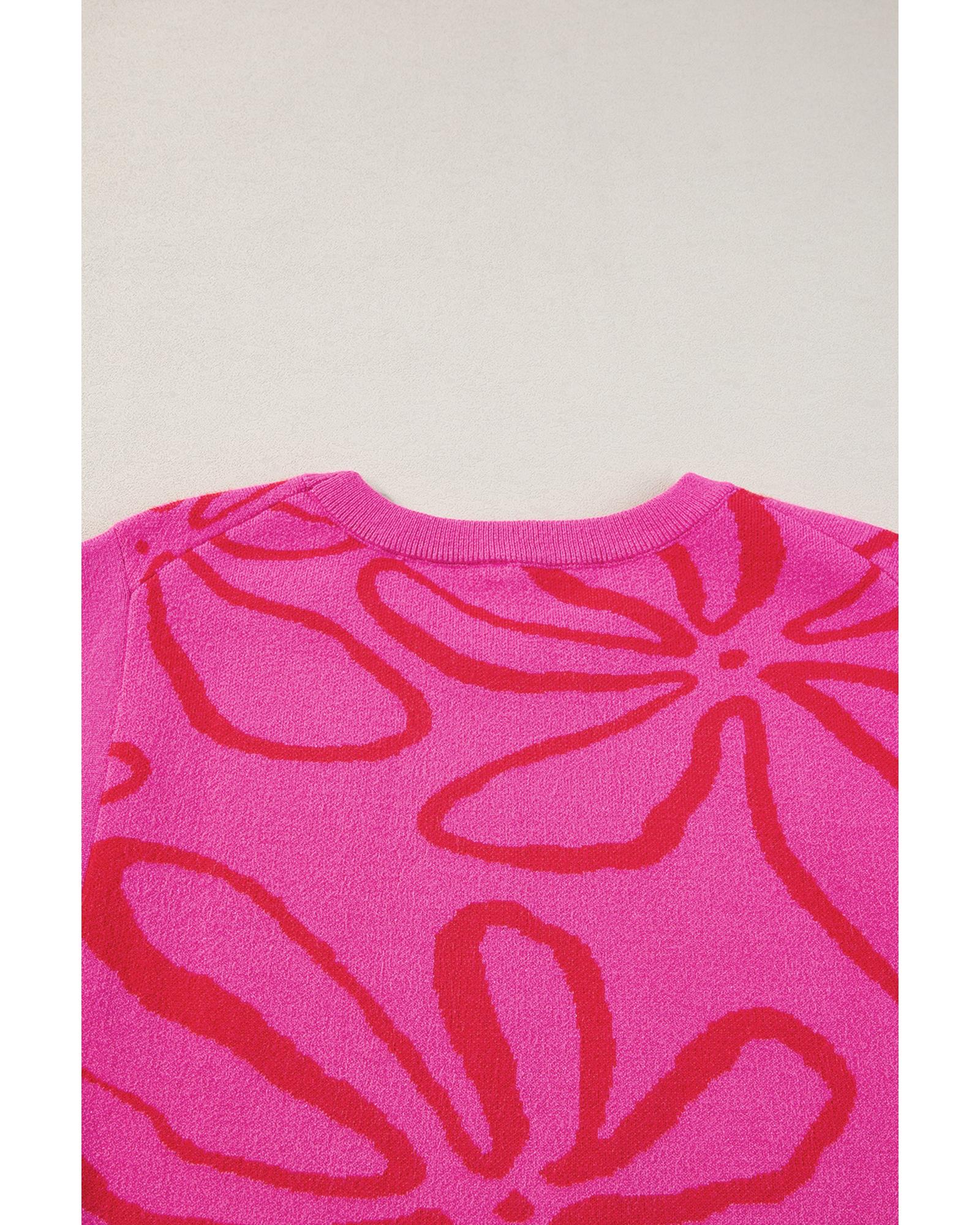 Bright Pink Button Sides Sleeveless Floral Knitted Top – L