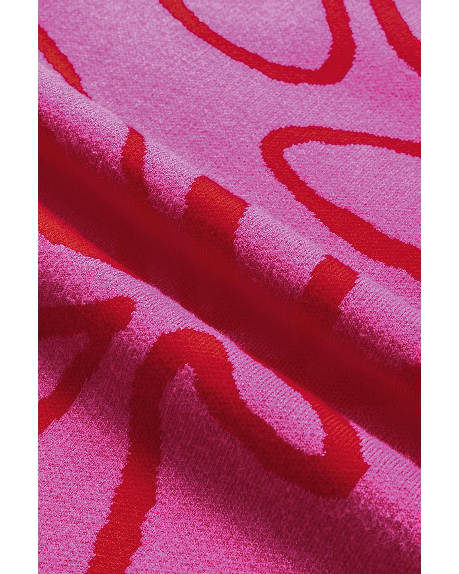 Bright Pink Button Sides Sleeveless Floral Knitted Top – XL