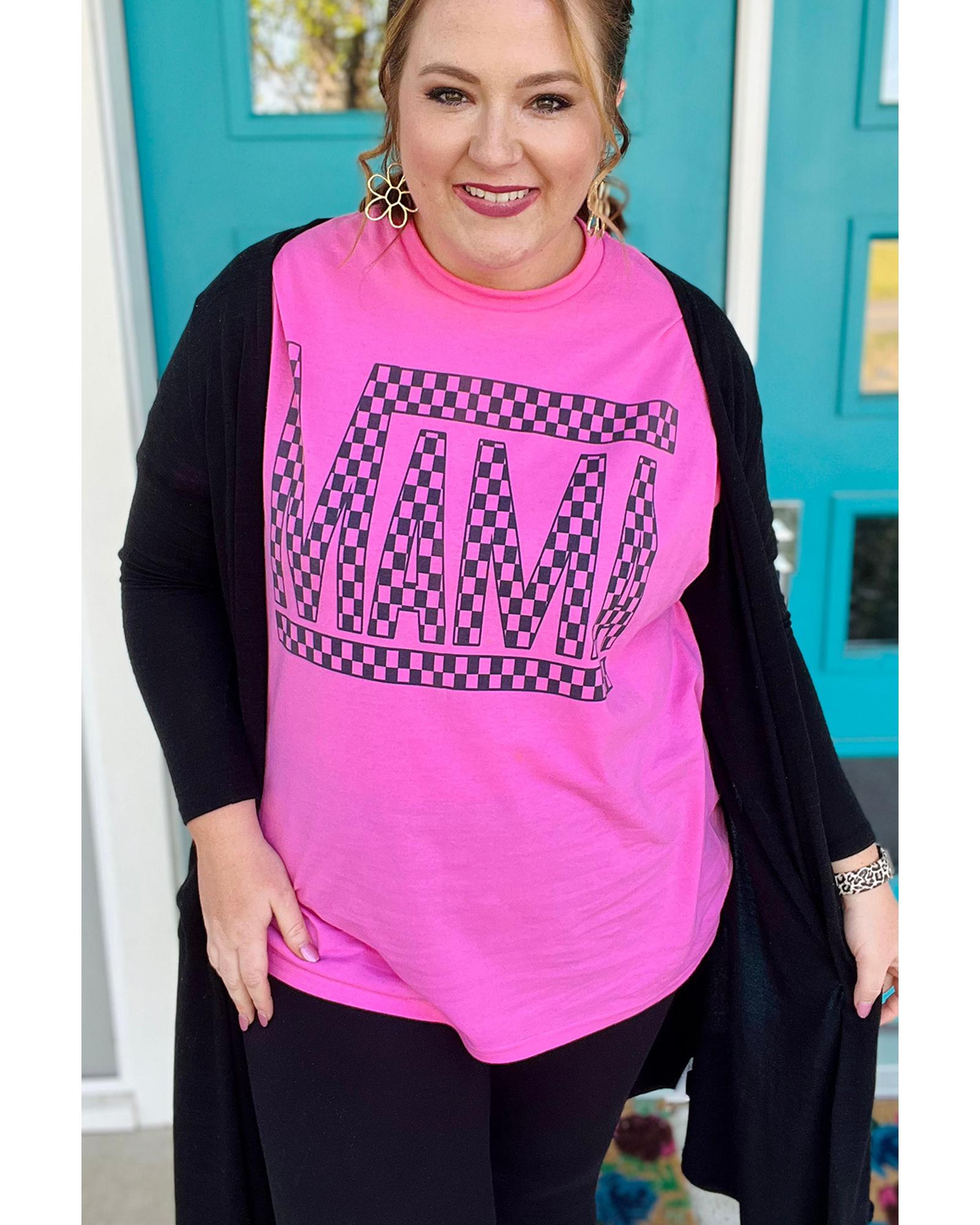 Bright Pink Checker MAMA Letter Printed Graphic Plus Size T Shirt – 3X
