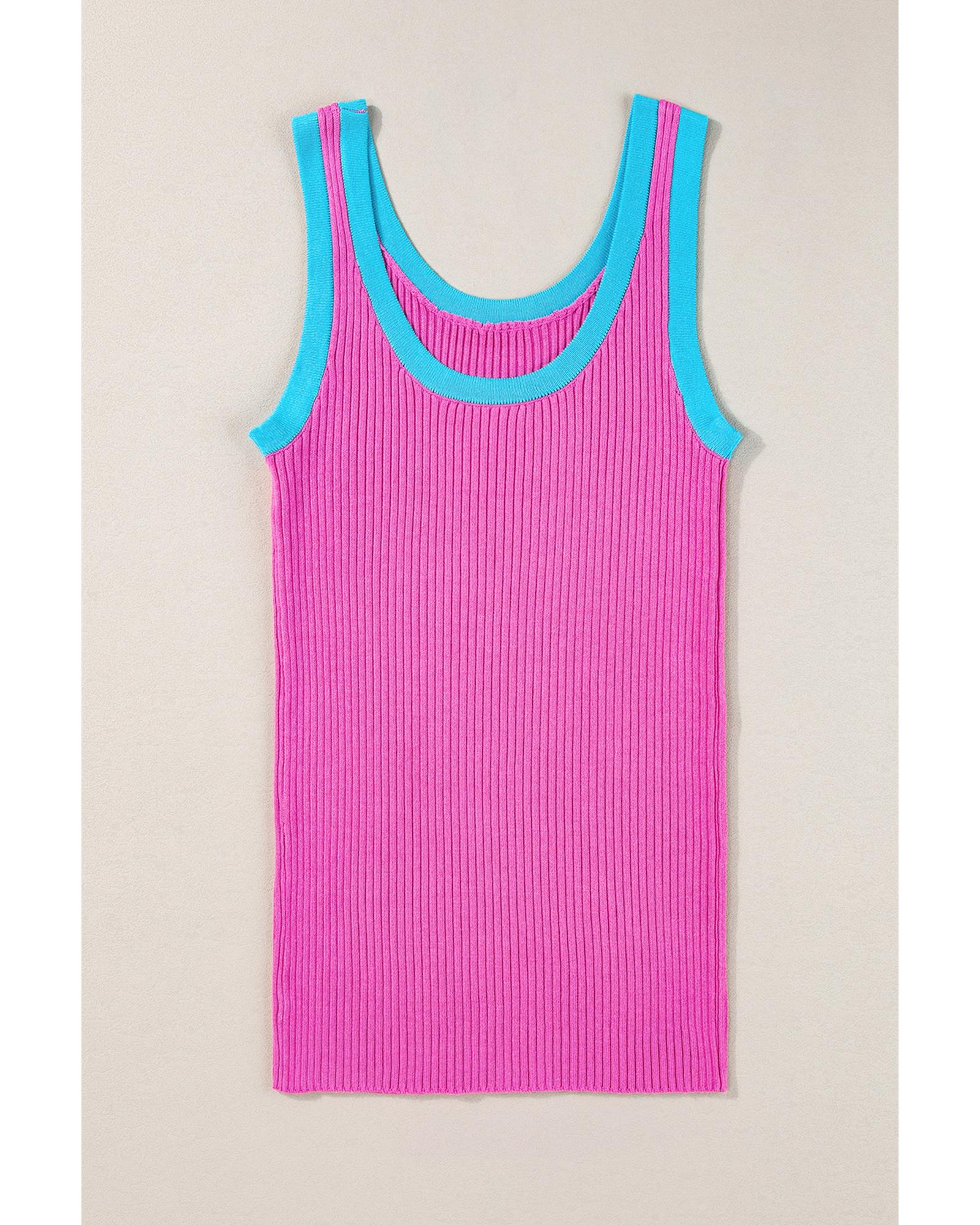 - Package Content: 1 x Pink Colorblock Edge Ribbed Knit Tank Top