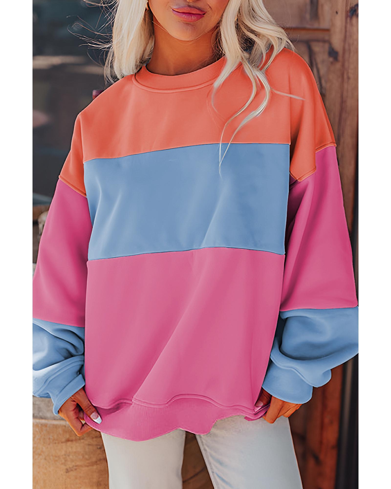 This bright pink colorblock patchwork drop shoulder sweatshirt offers a trendy and comfortable casual style. Designed with a loose fit and unique patchwork details, it is suitable for everyday wear and casual outings.
