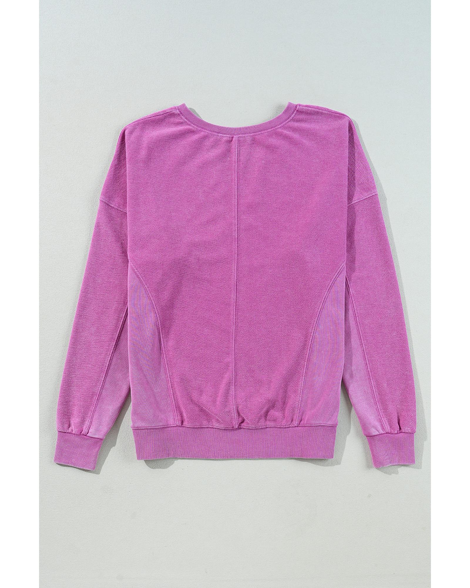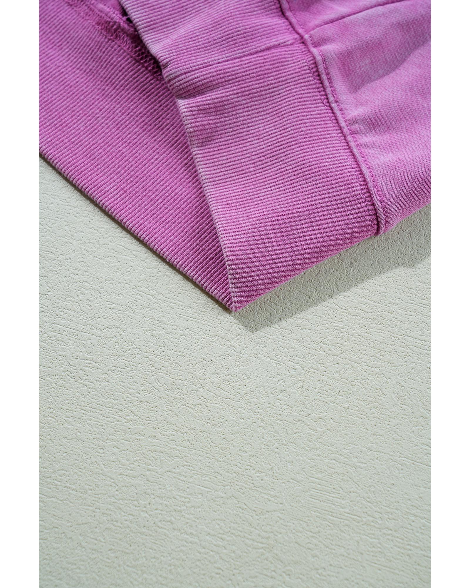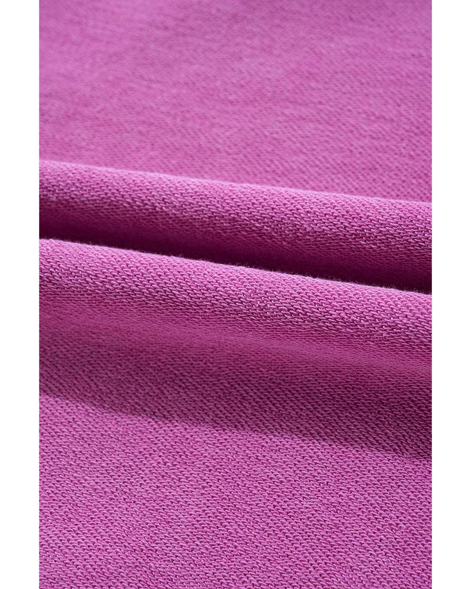 Bright Pink Solid Color Notched Neck Drop Shoulder Sweatshirt – 2XL
