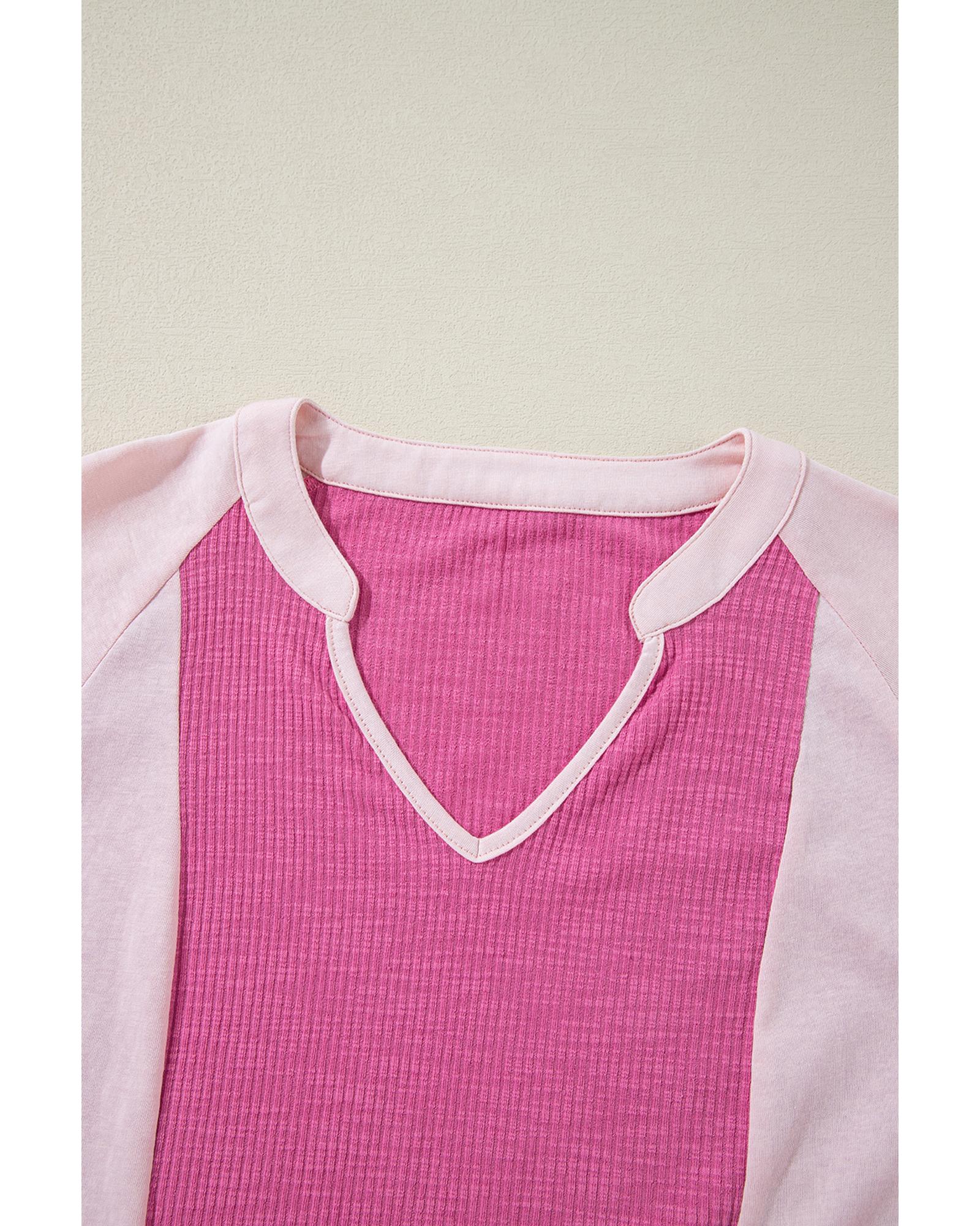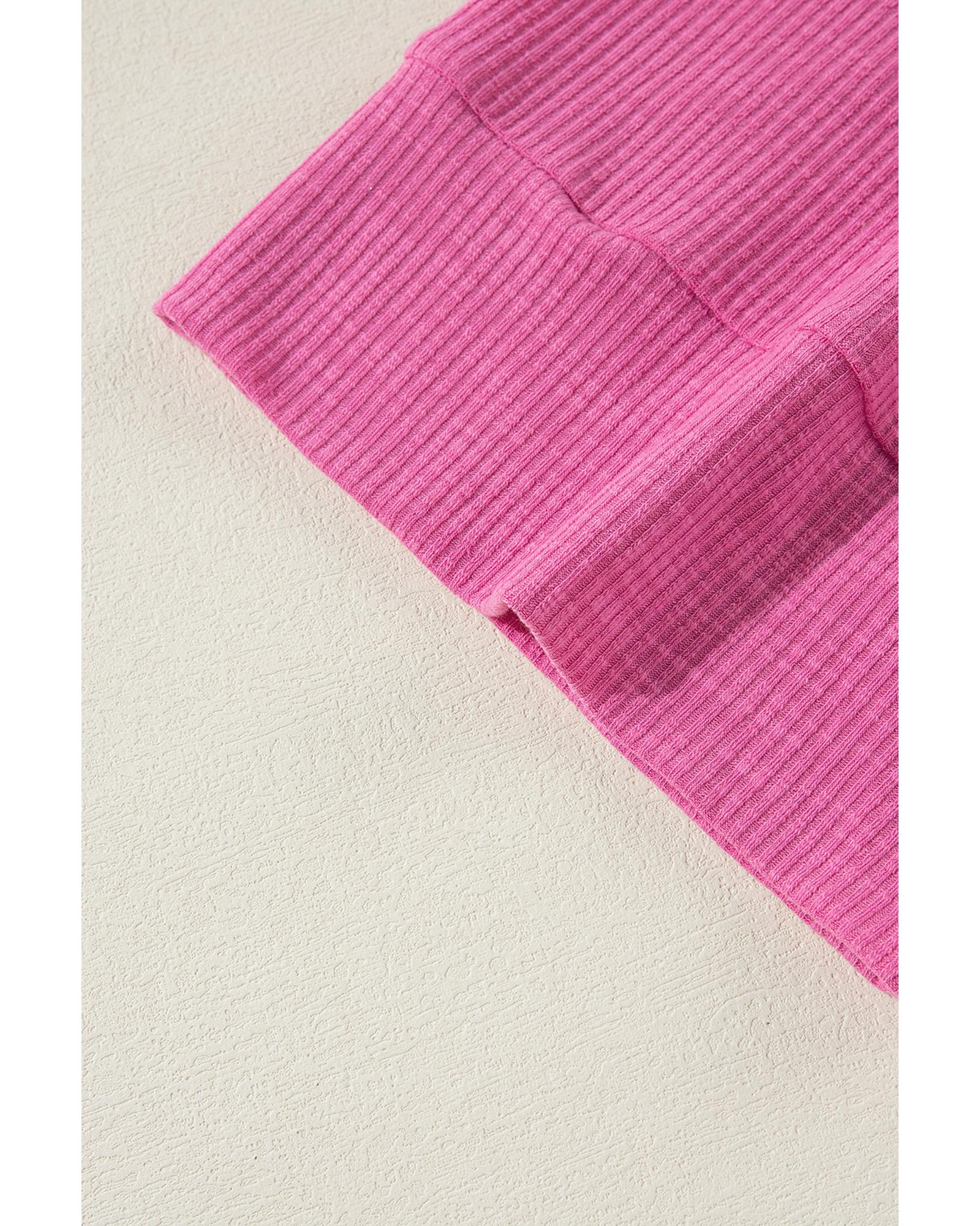 This bright pink textured colorblock top features a trendy oversized fit with 3/4 sleeves, making it a stylish choice for casual occasions. Crafted from a soft and comfortable knit fabric, it offers both comfort and fashion in one piece.