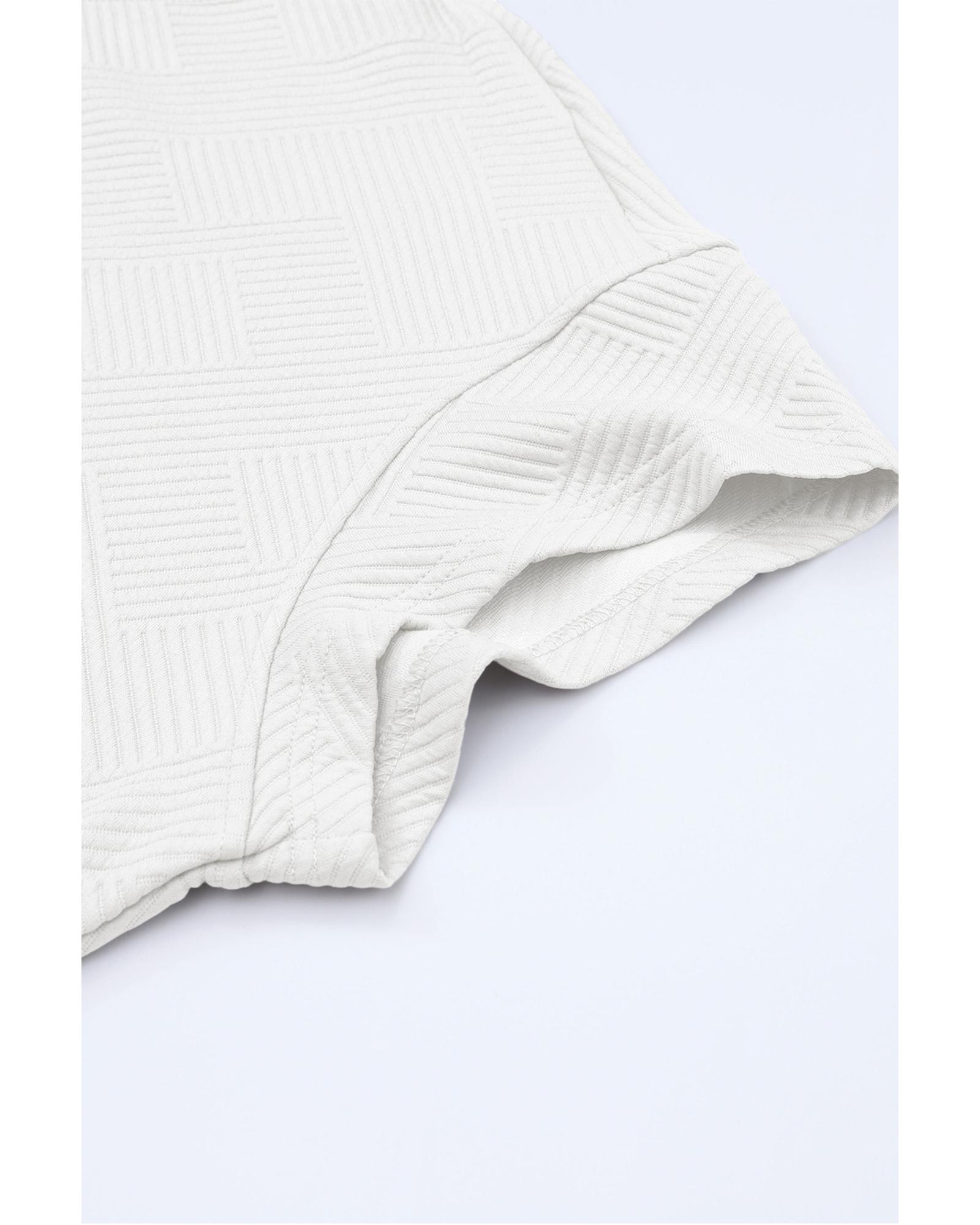 Bright White Textured Loose Fit T Shirt and Drawstring Pants Set – M