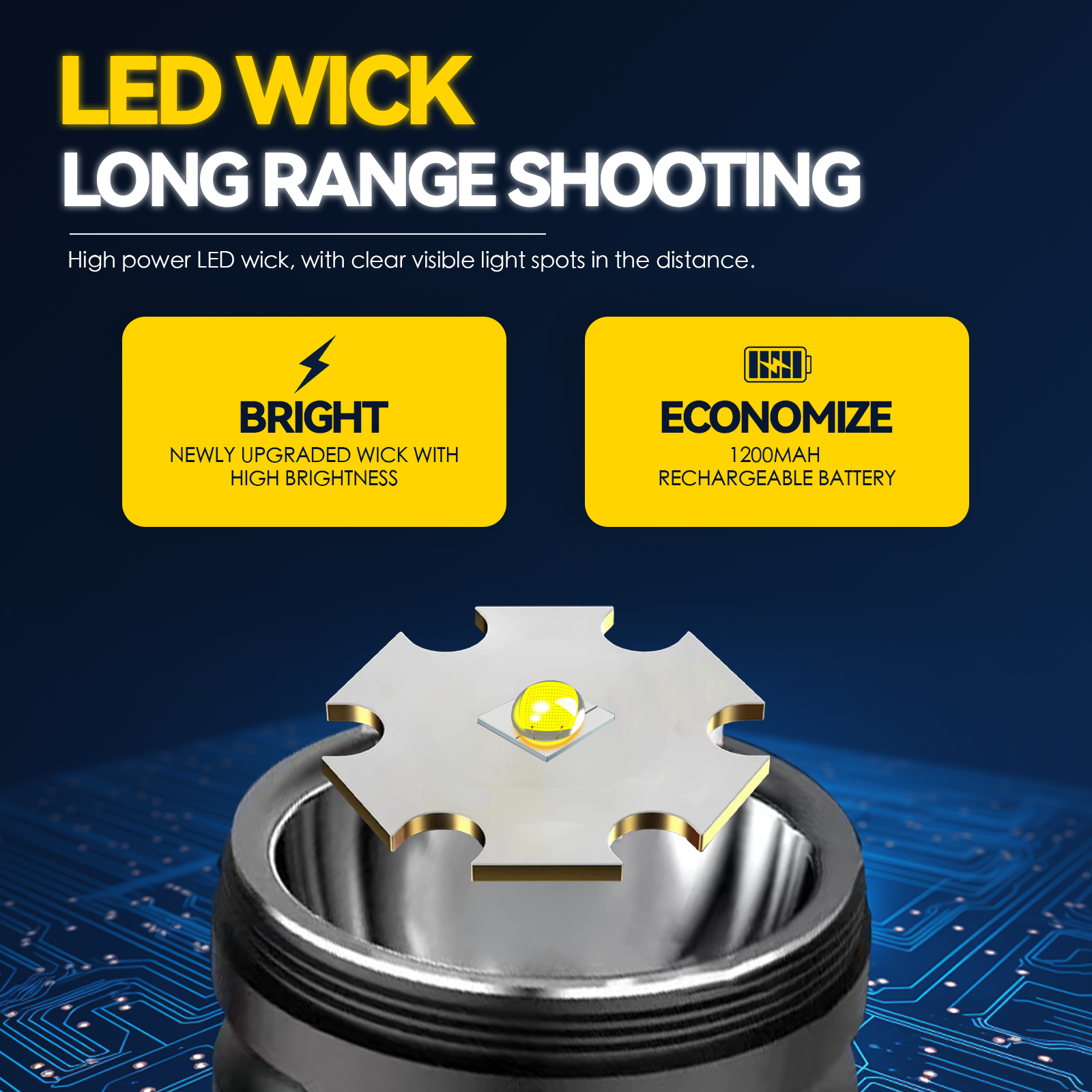 This rechargeable LED flashlight is designed for outdoor activities, emergencies, and everyday use. It offers high brightness and a wide range of illumination, making it a reliable lighting tool in various situations. The flashlight features multiple modes and a rechargeable battery, providing convenience and versatility for users.
