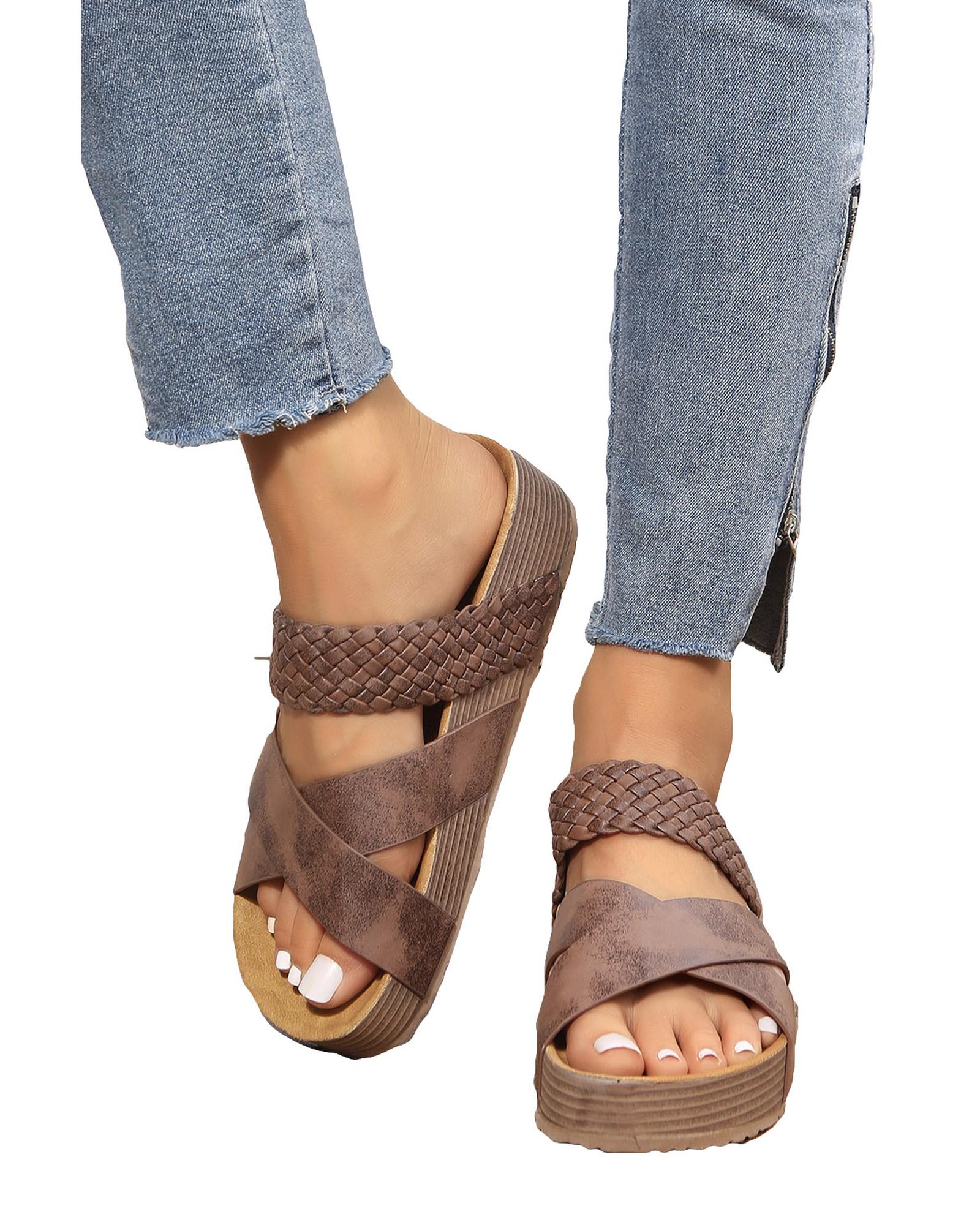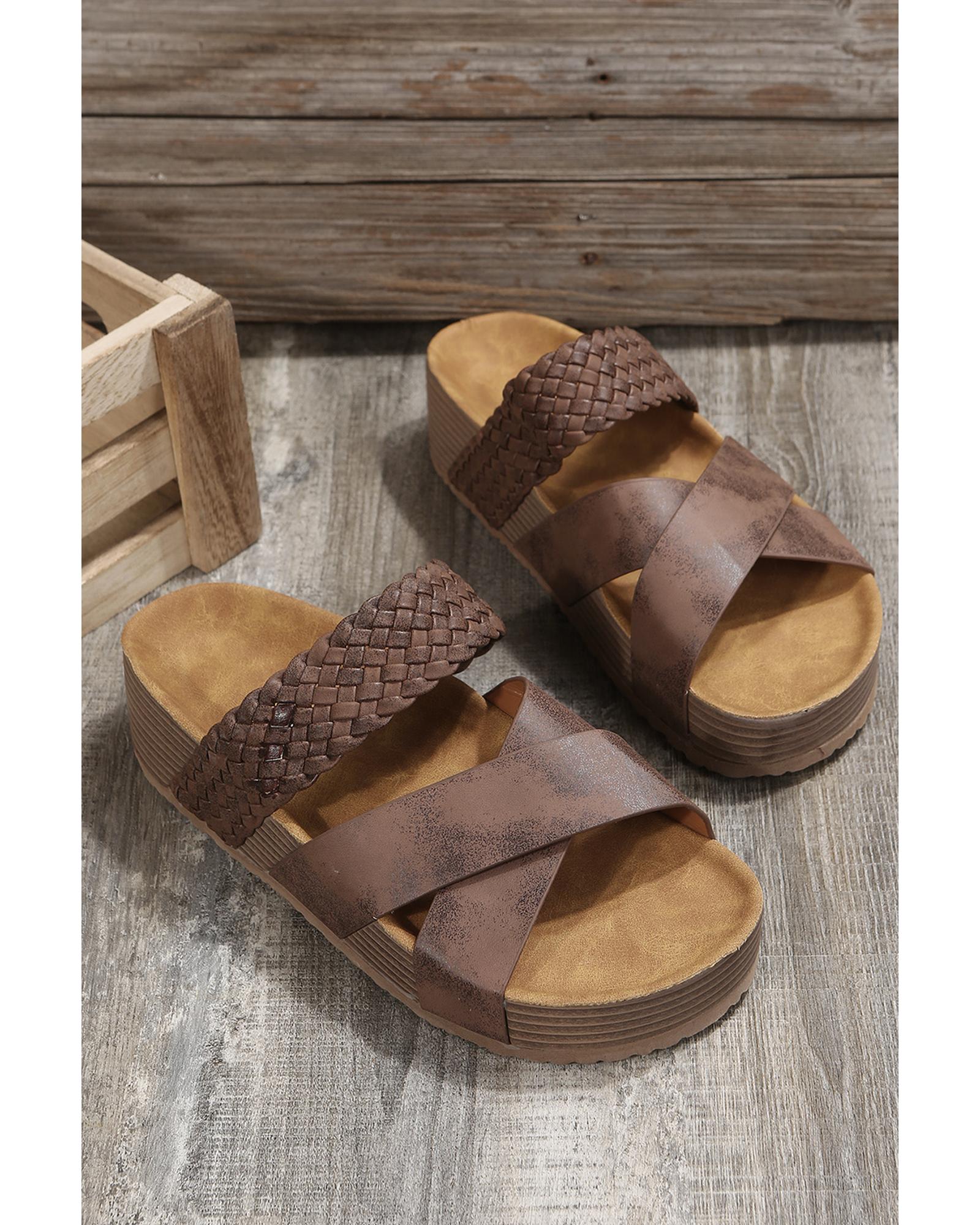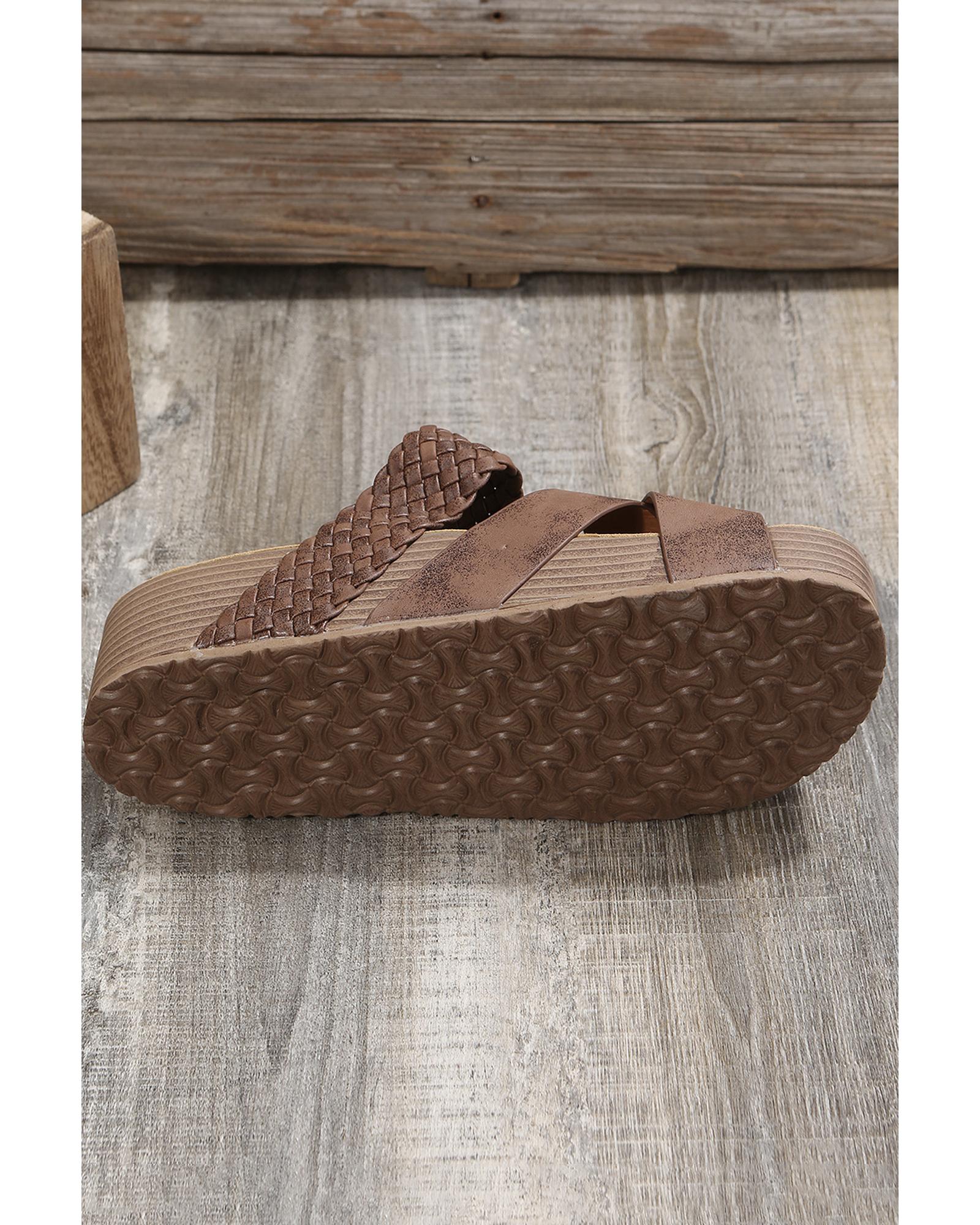 Brown Braided Detail Criss Cross Platform Slippers – 38 EU