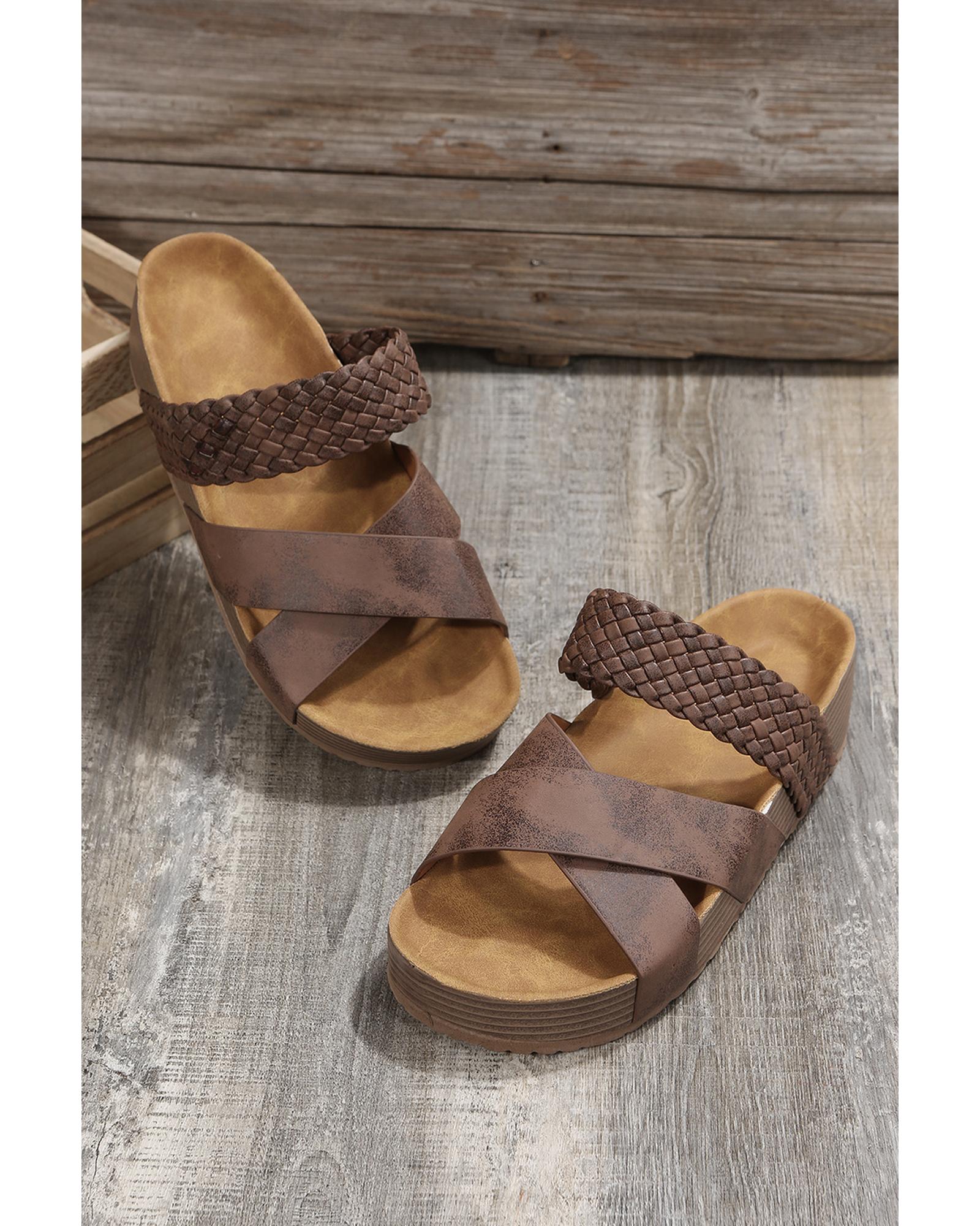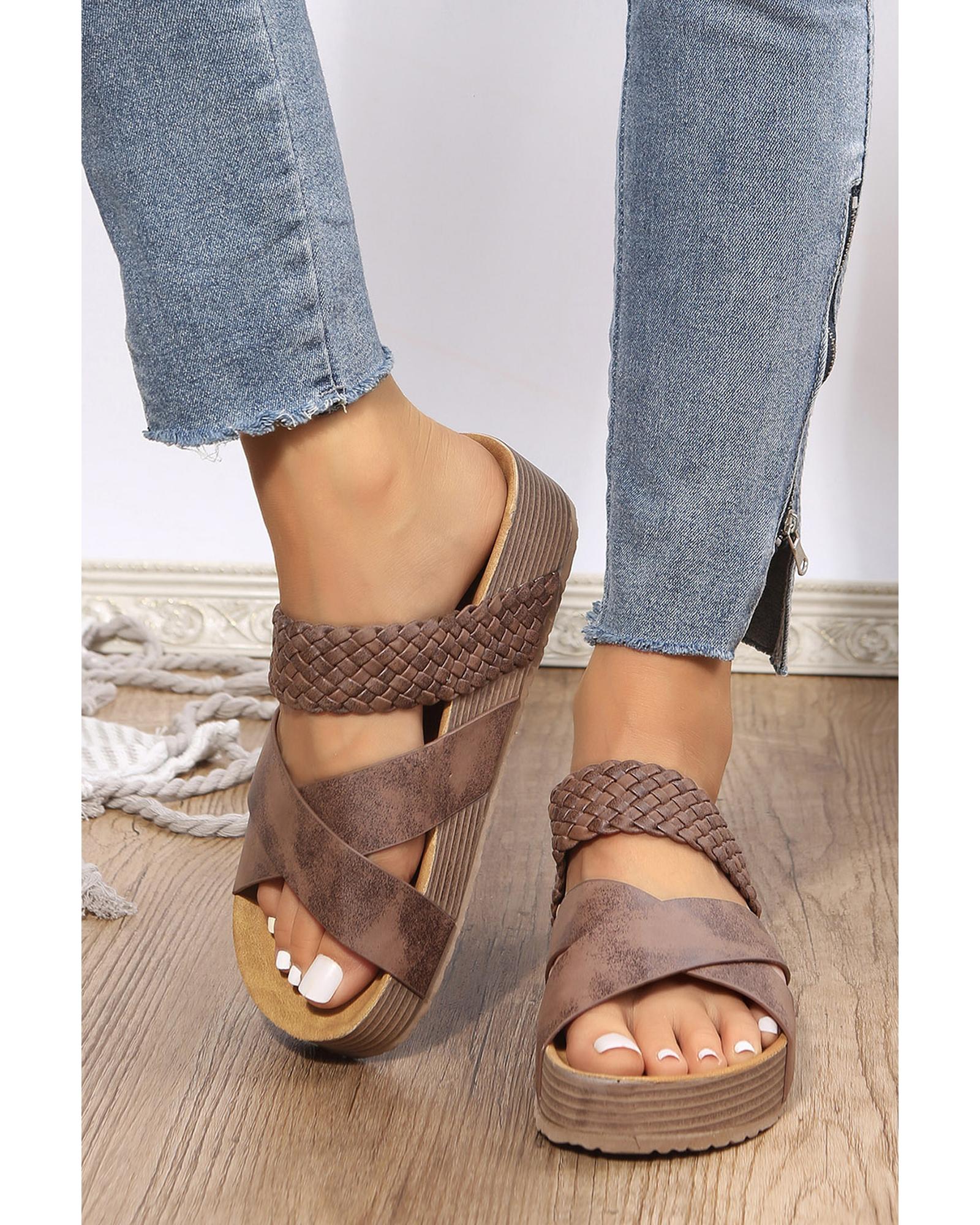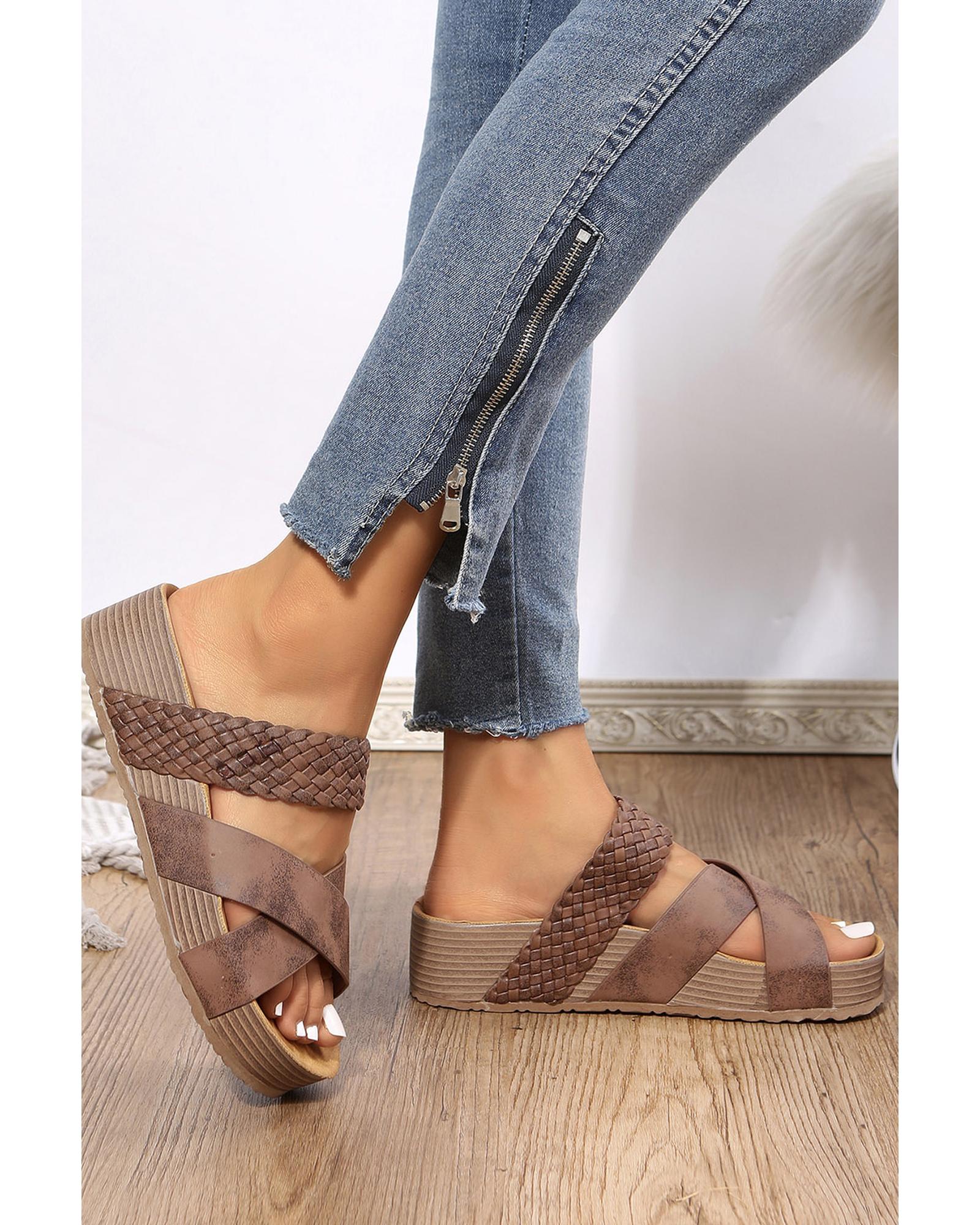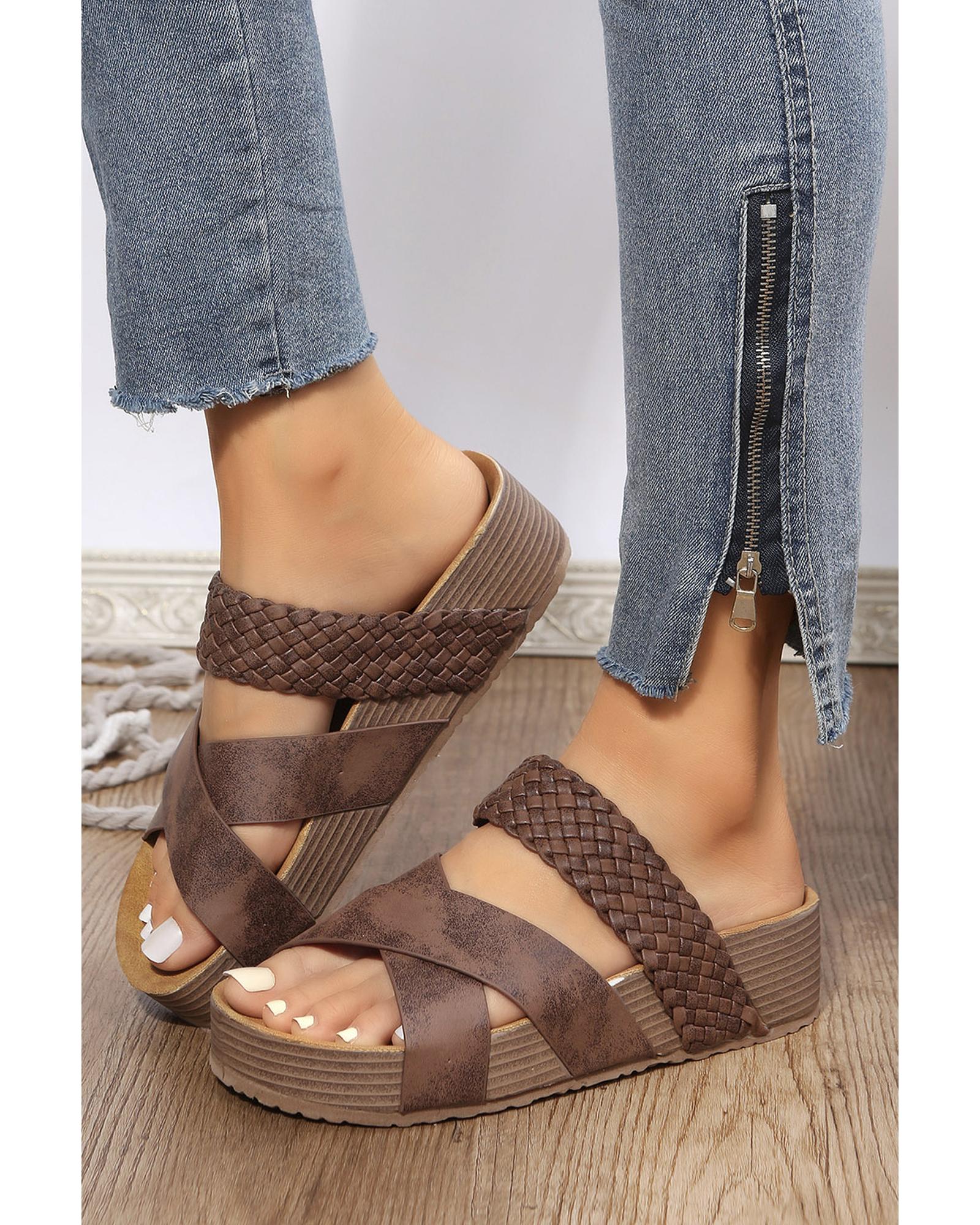 Brown Braided Detail Criss Cross Platform Slippers – 39 EU