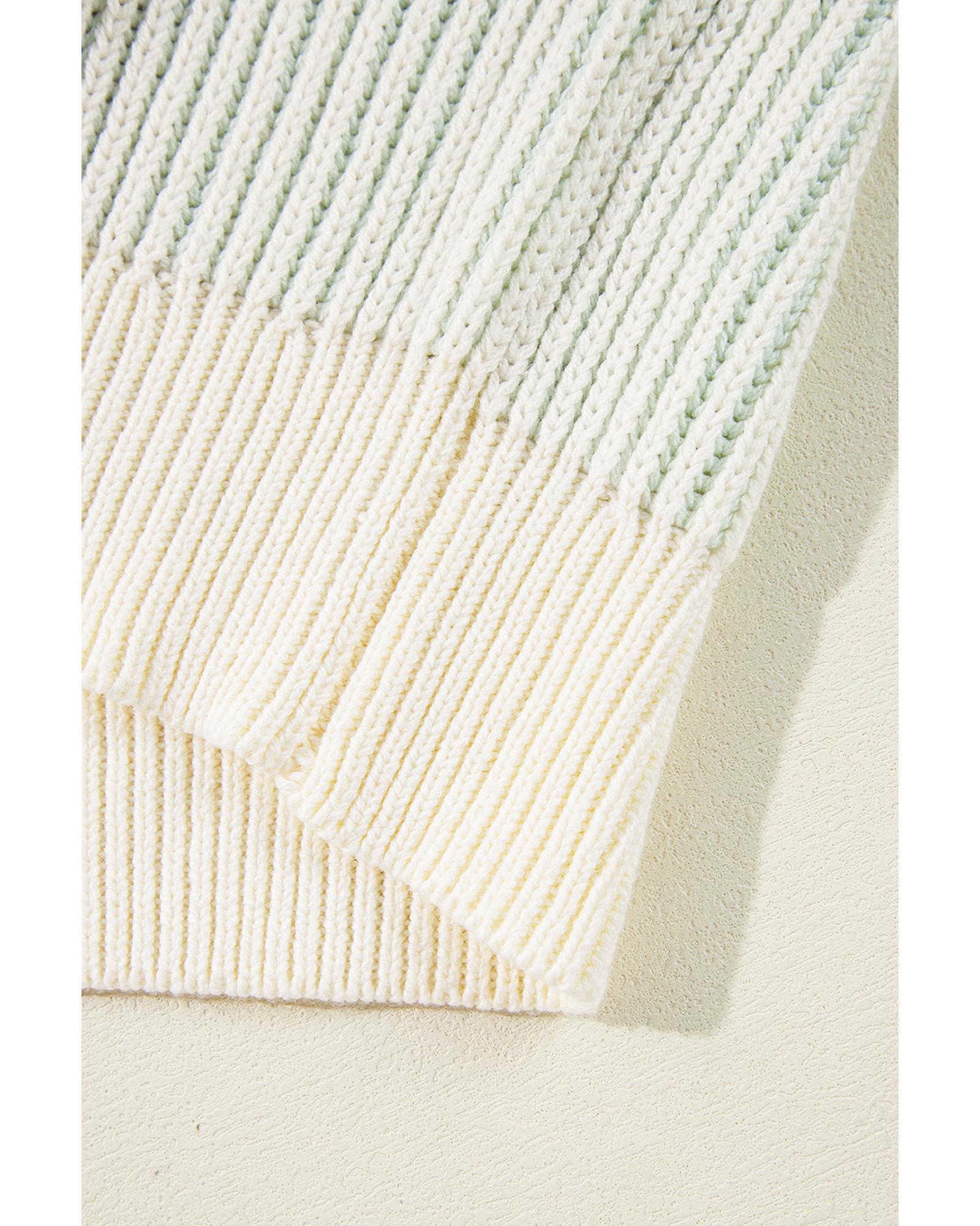 White Colorful Edge Quarter Zip Drop Shoulder Sweater - L Original price was: $74.99.Current price is: $40.99.