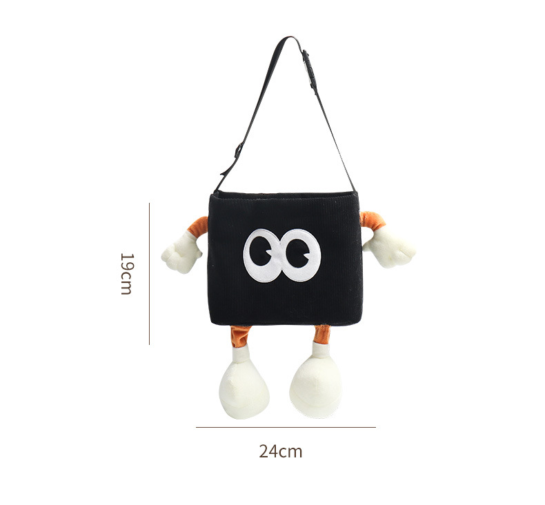 - Design: Cartoon style with plush arms, legs, and large white eyes