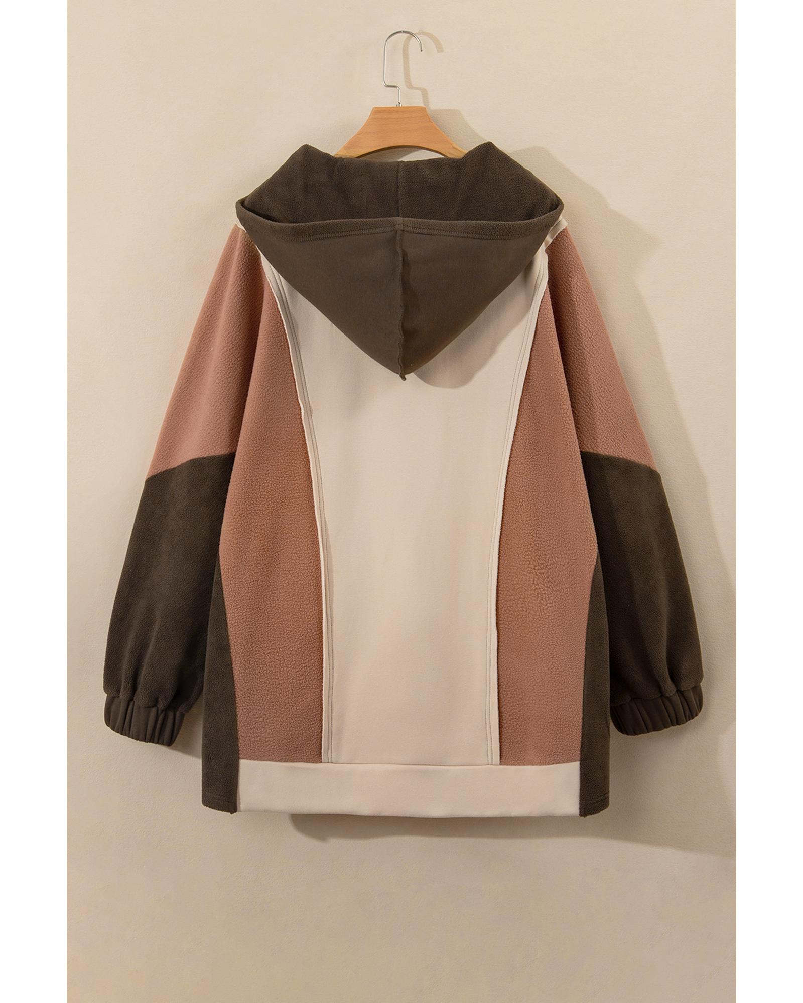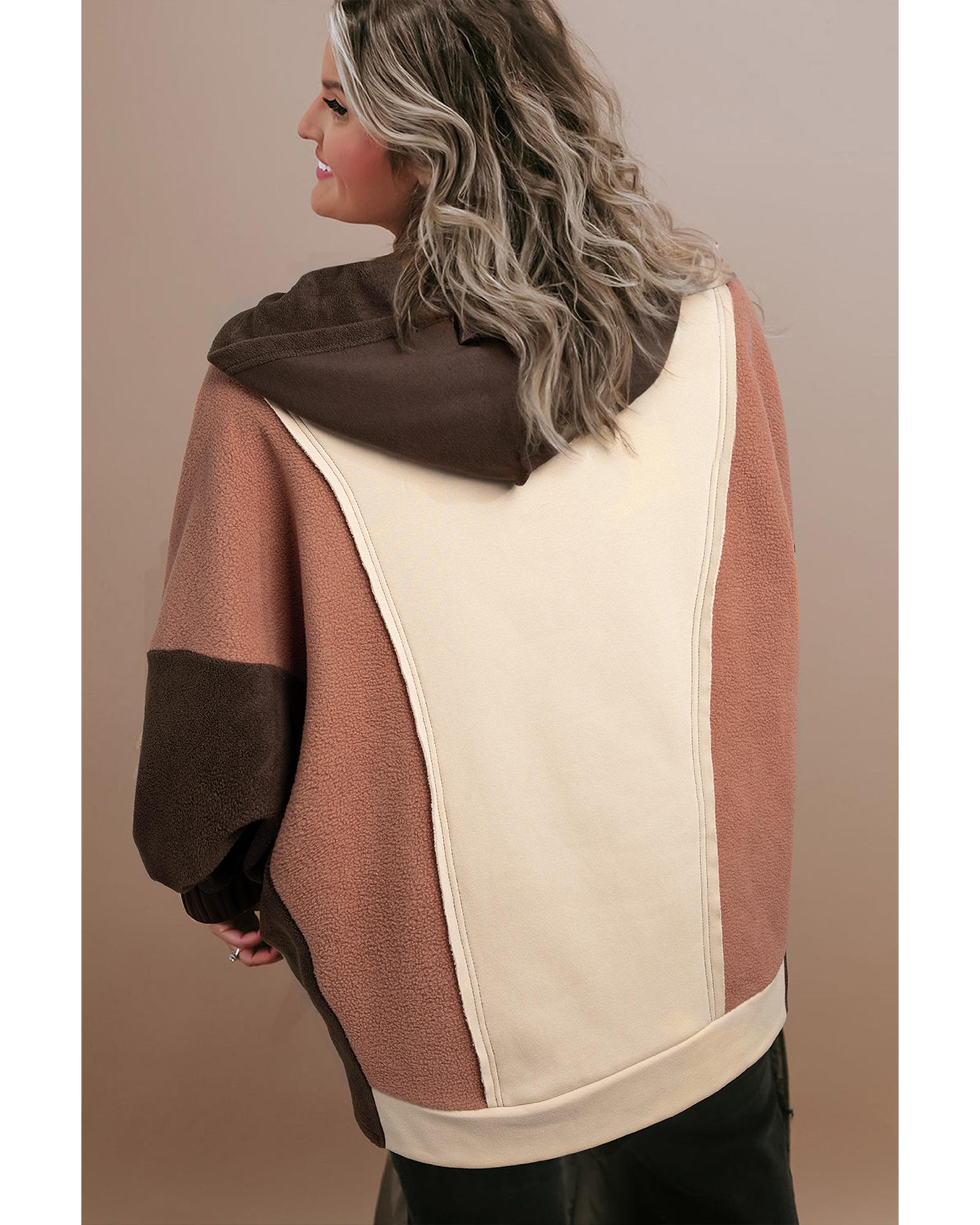 Brown Exposed Seam Colorblock Plus Size Hoodie – 2X