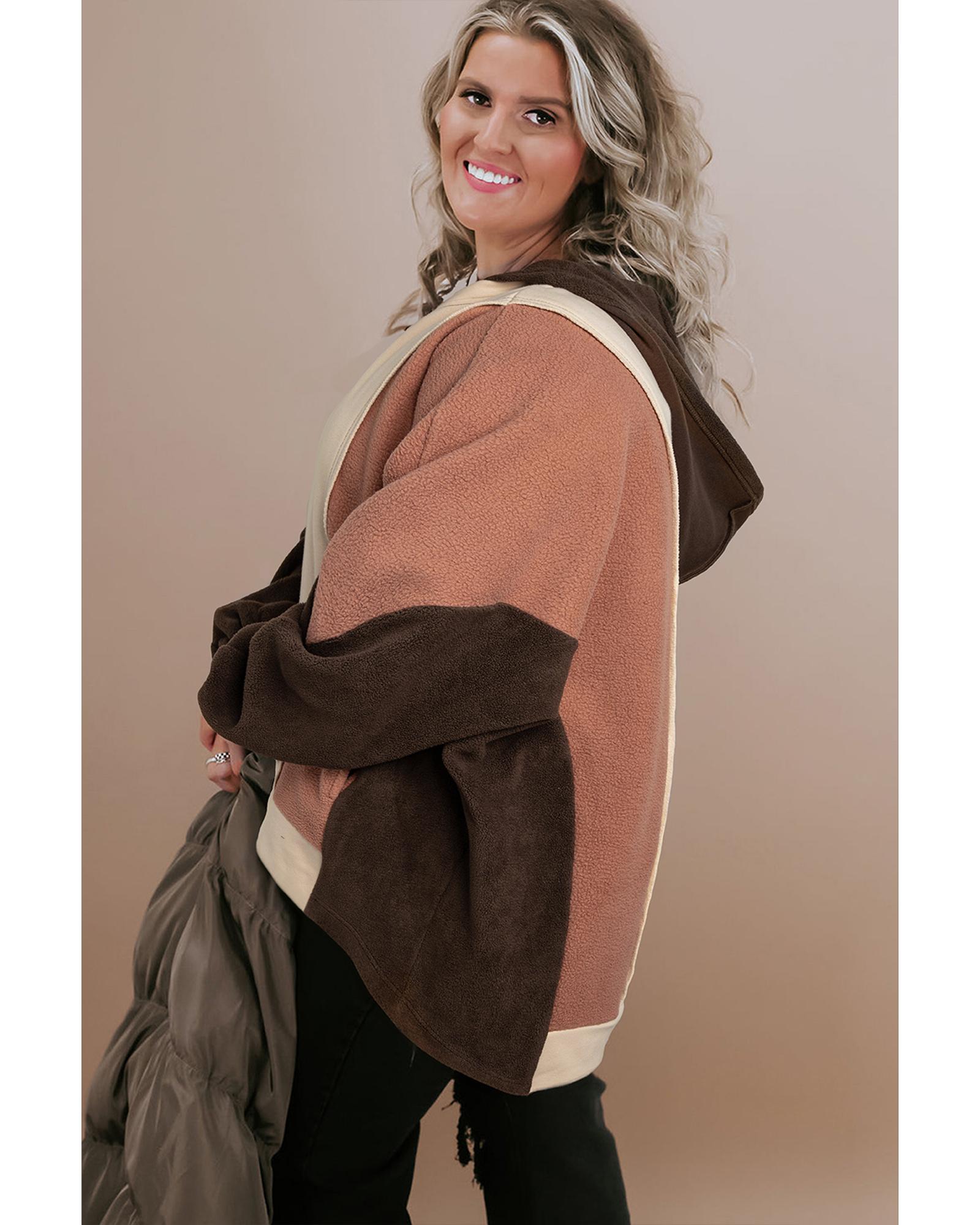 Brown Exposed Seam Colorblock Plus Size Hoodie – 4X