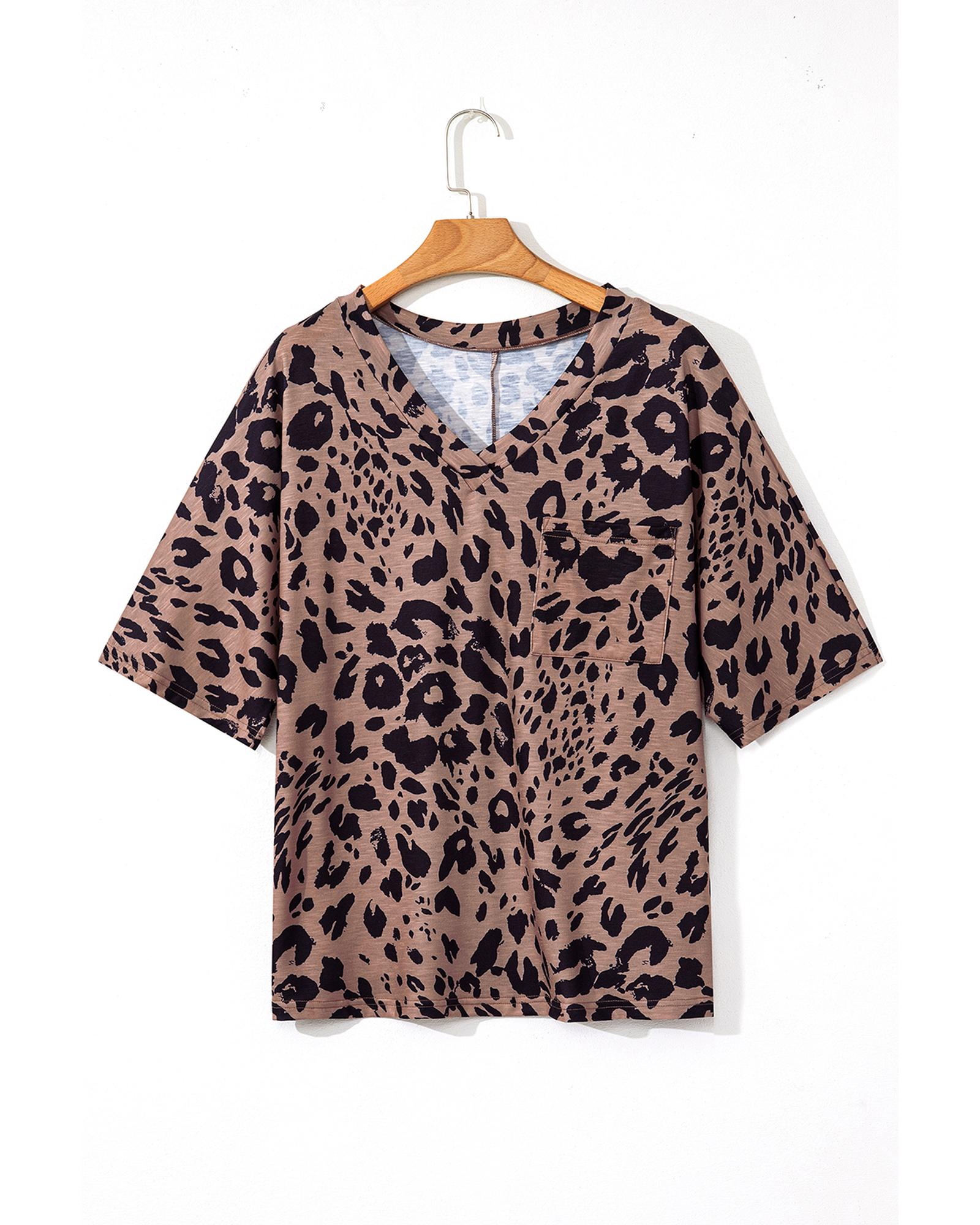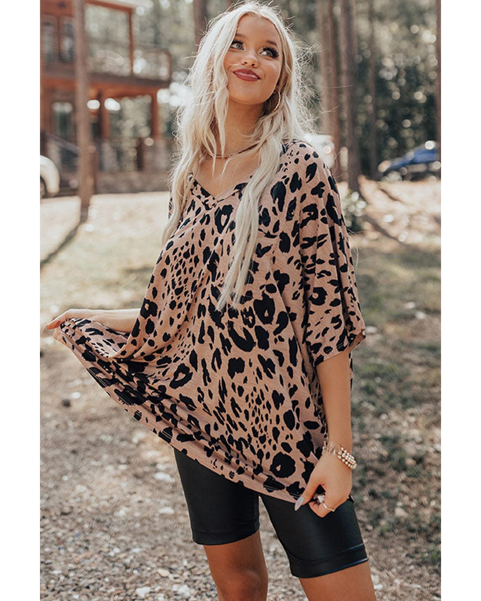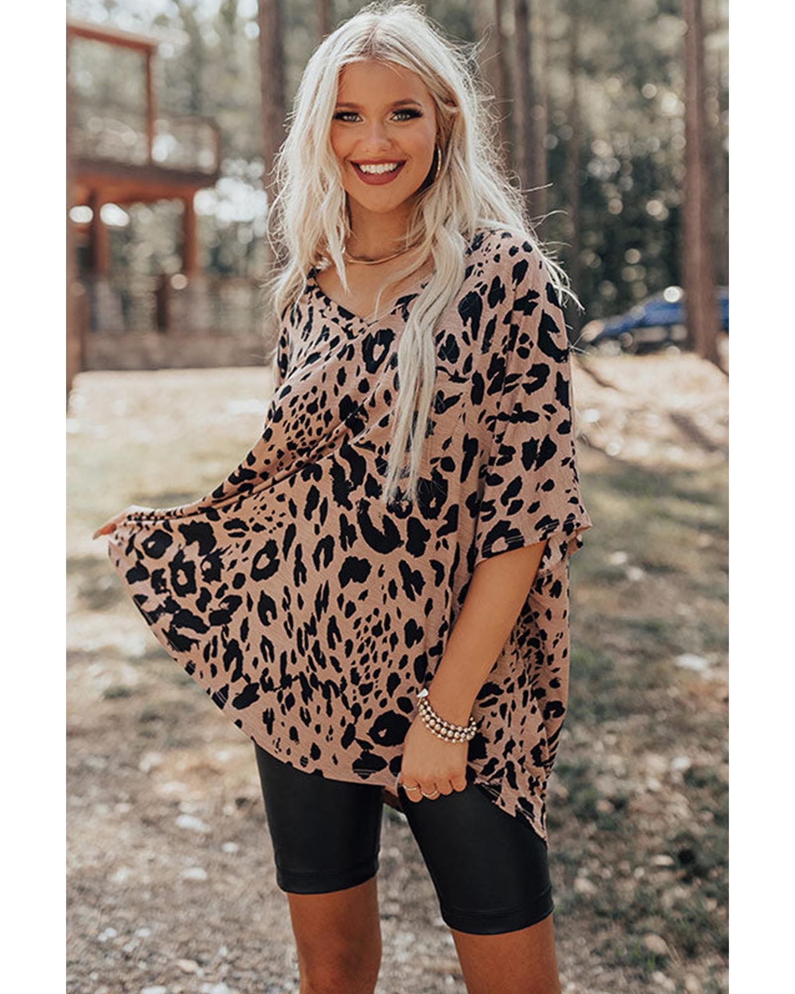 Package Content: One oversized leopard print V neck half sleeve tee