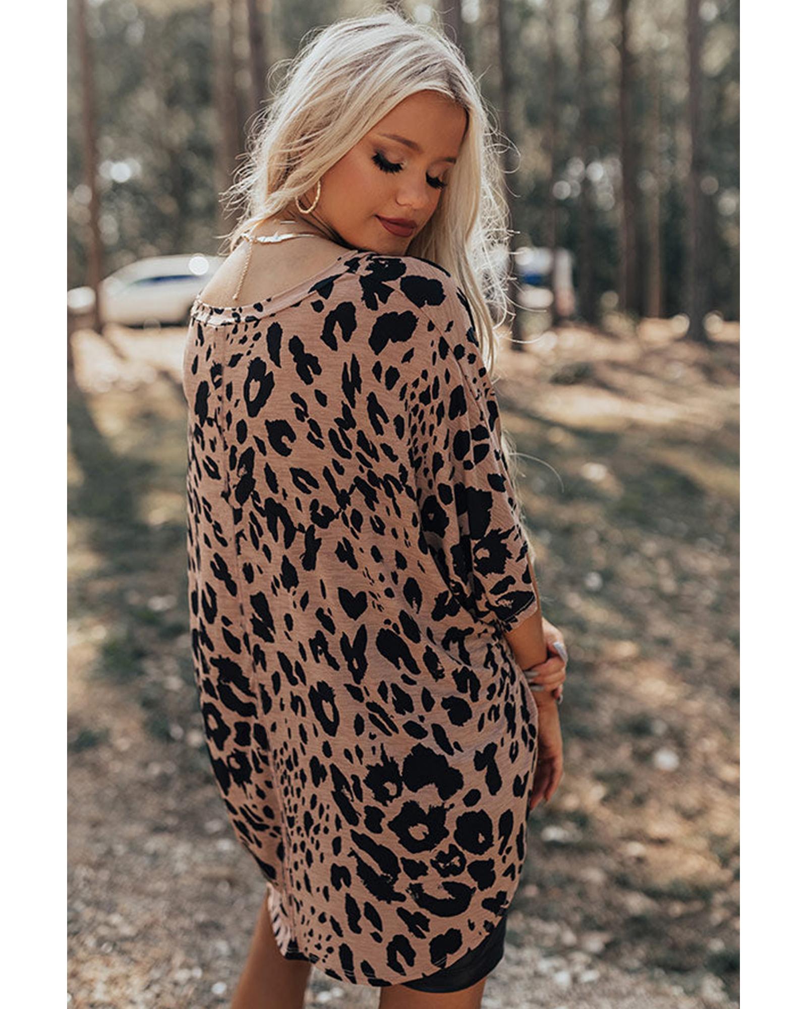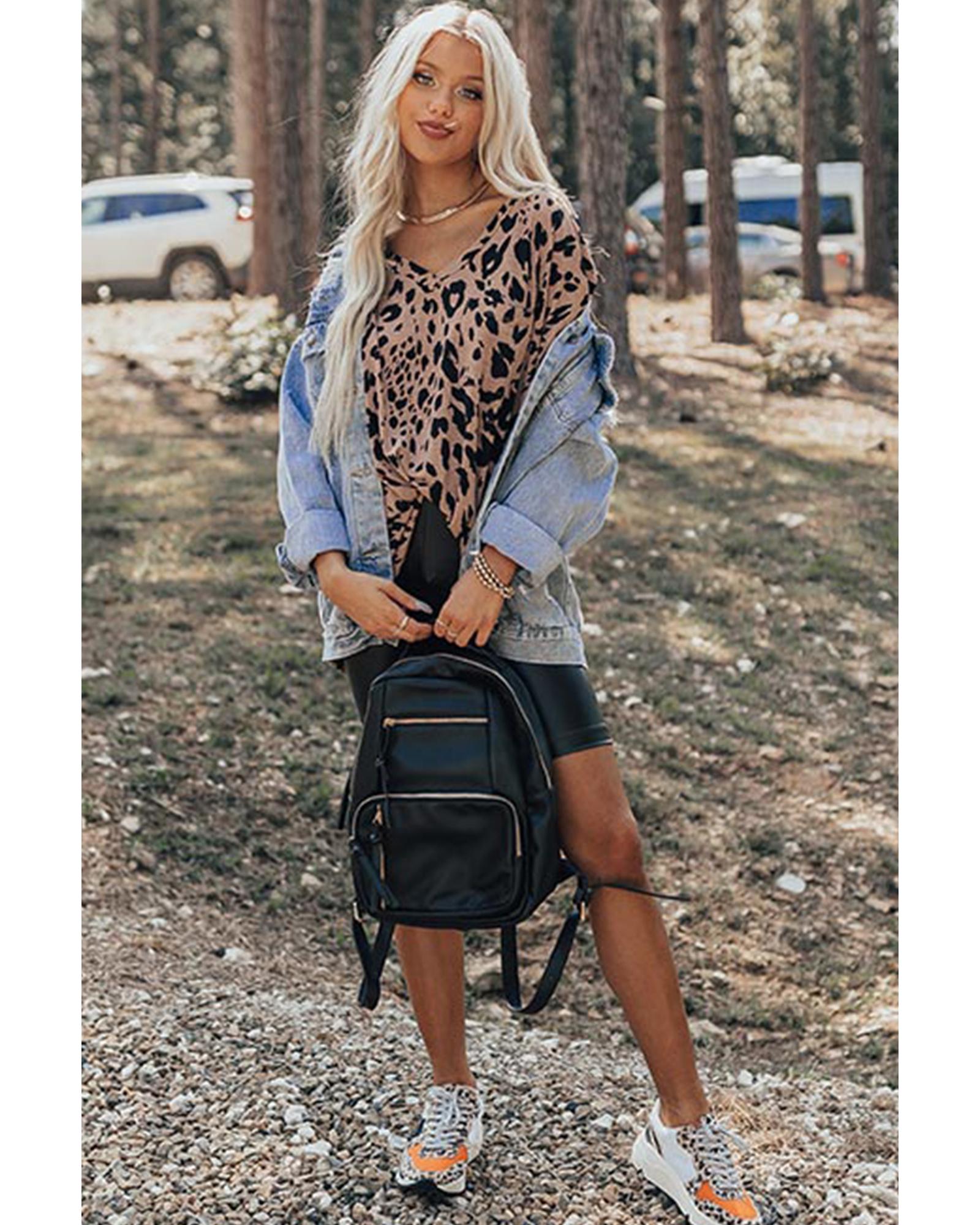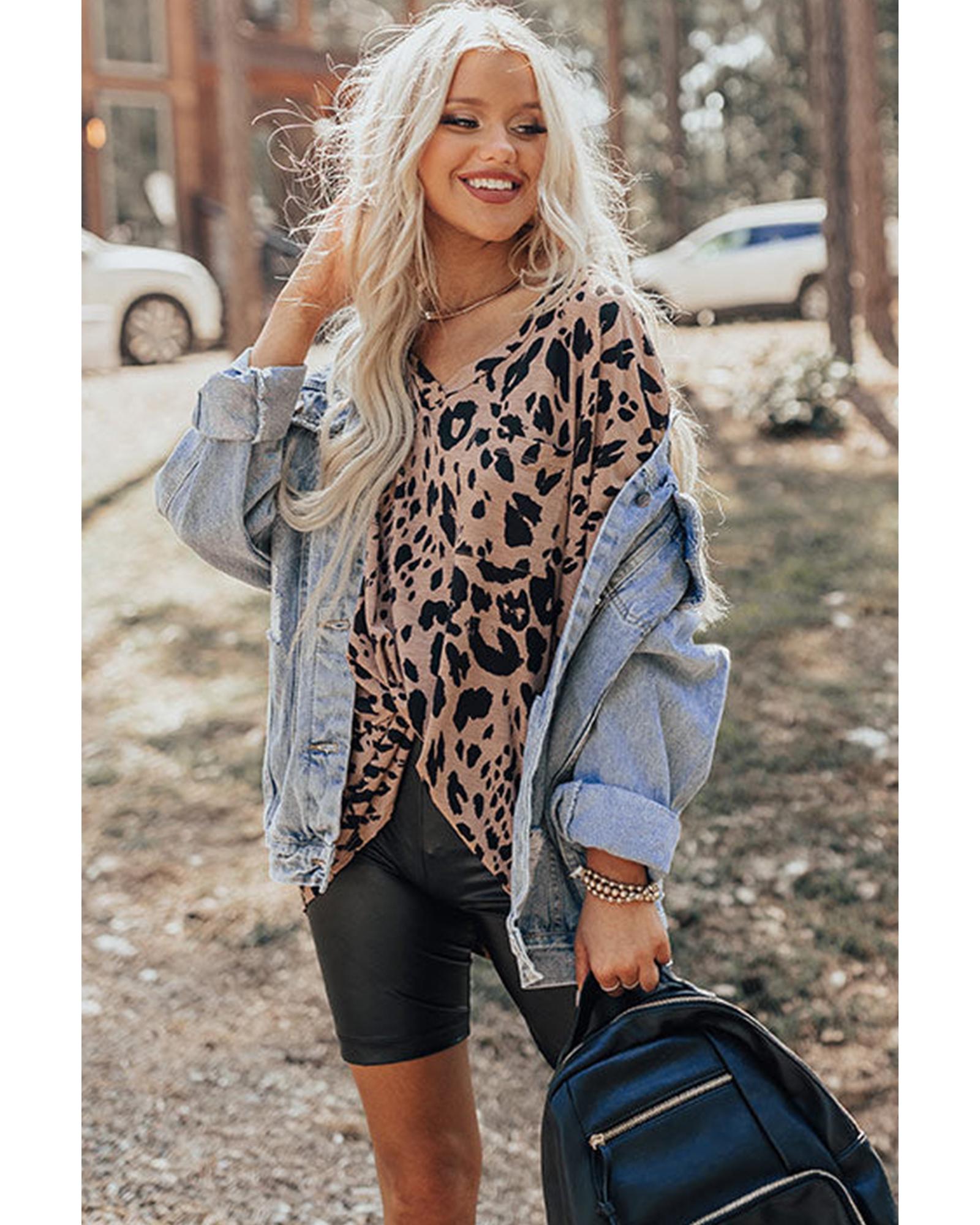 Package Content: One oversized leopard print V neck half sleeve tee