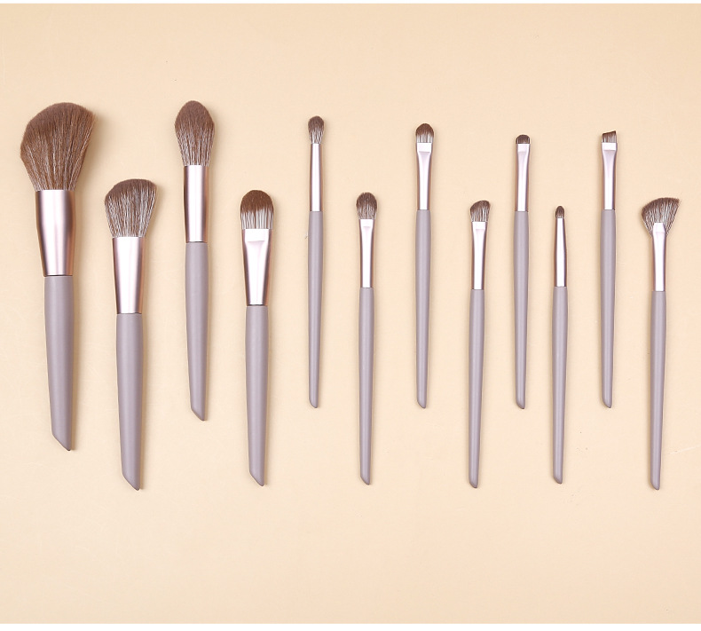 - 12 makeup brushes including face, eye, and lip tools