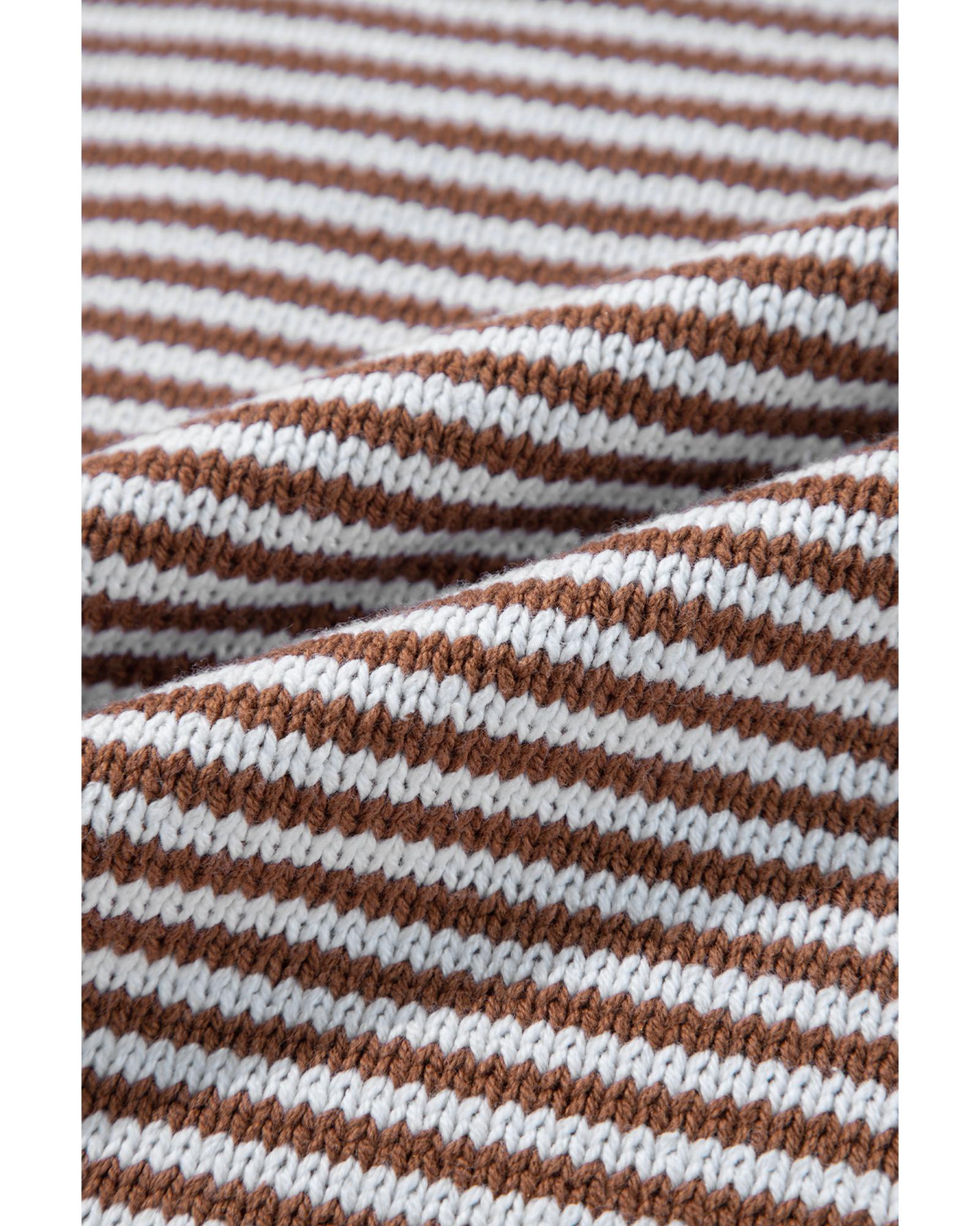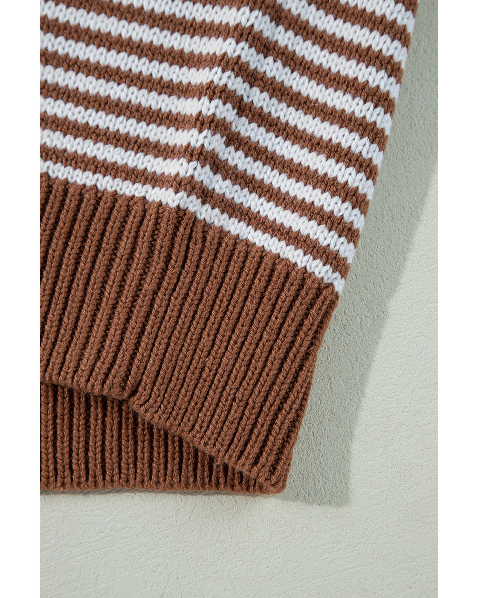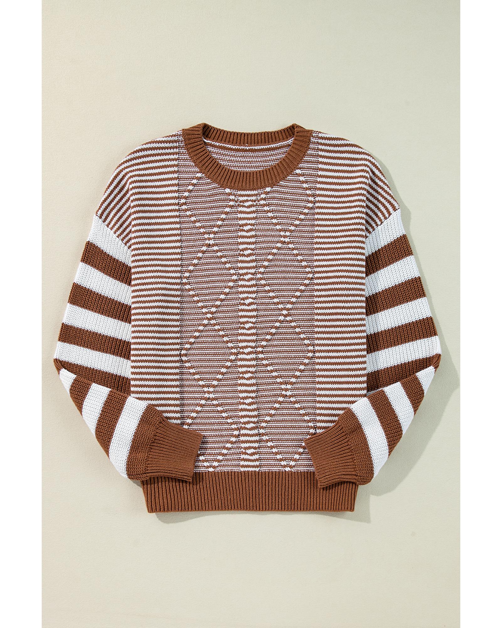 Brown Stripe Geometric Textured Drop Shoulder Sweater – XL