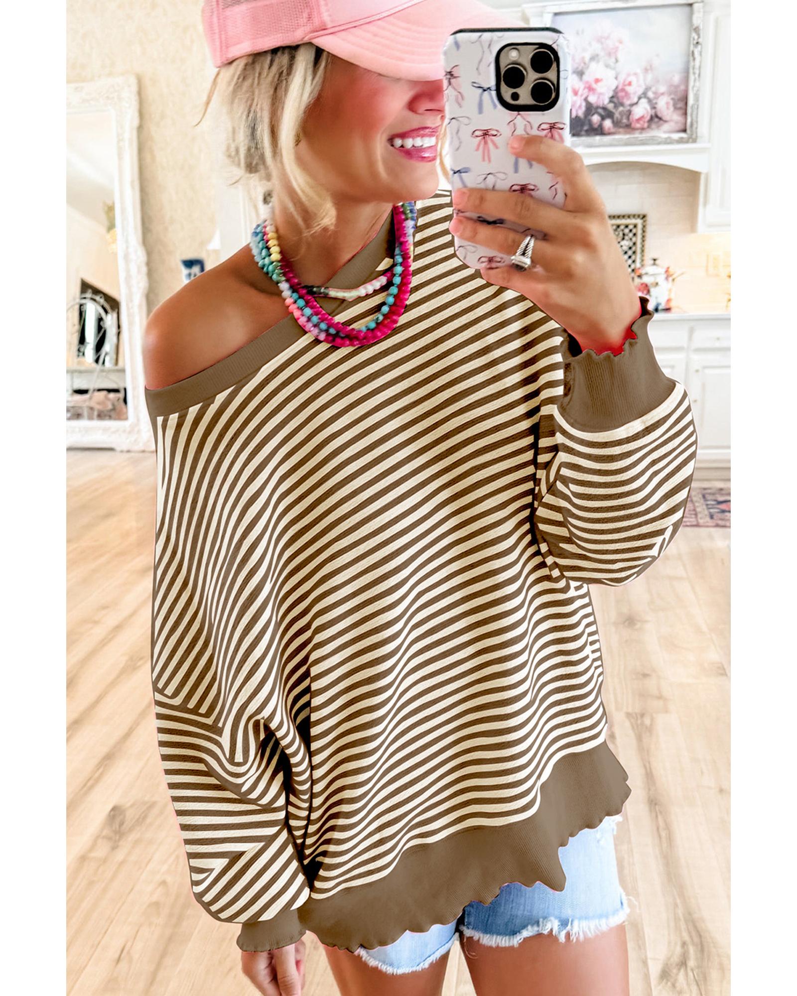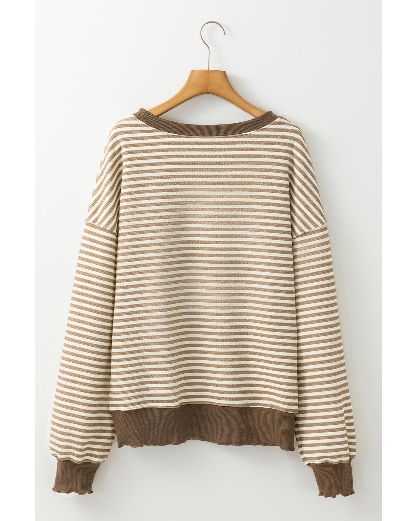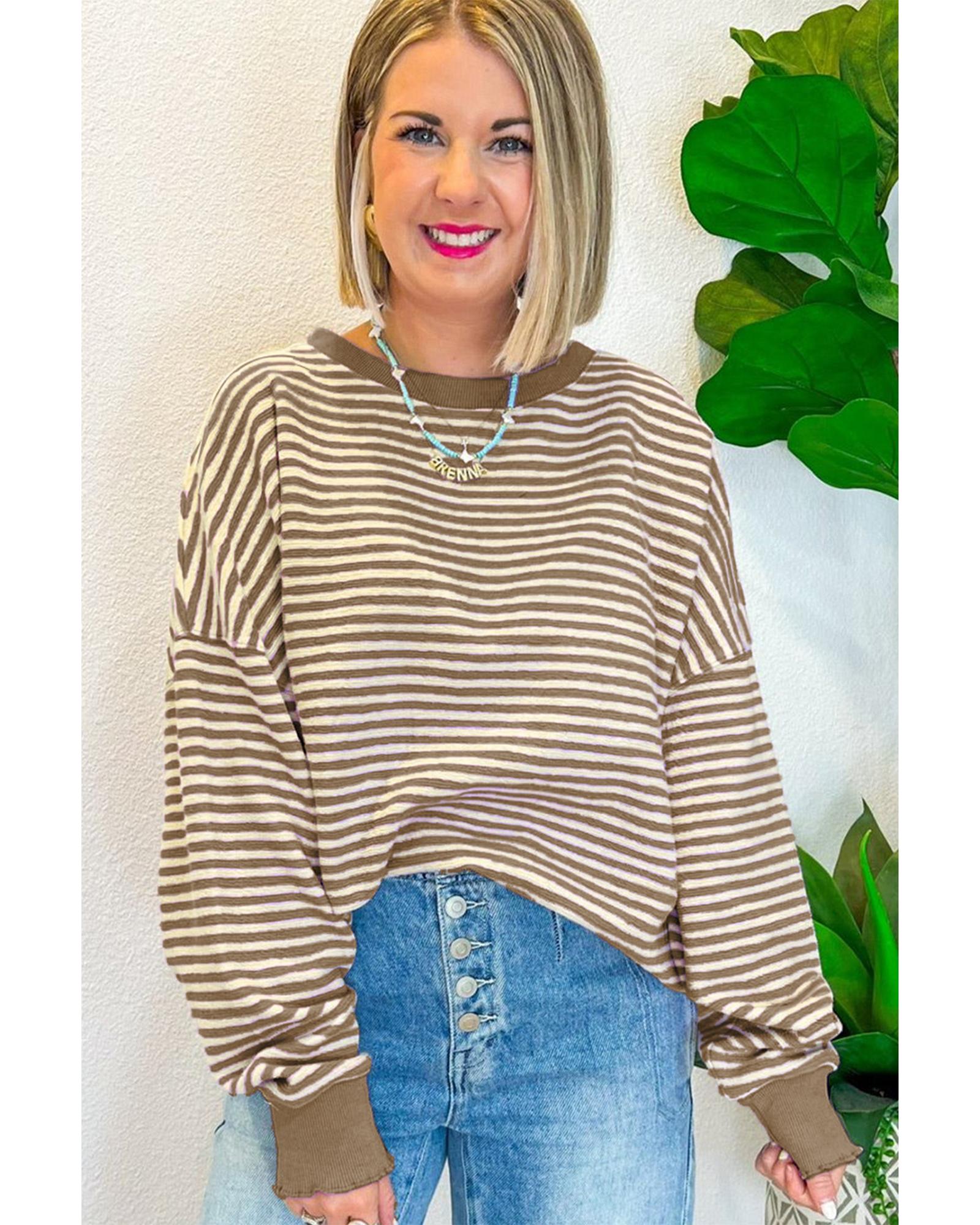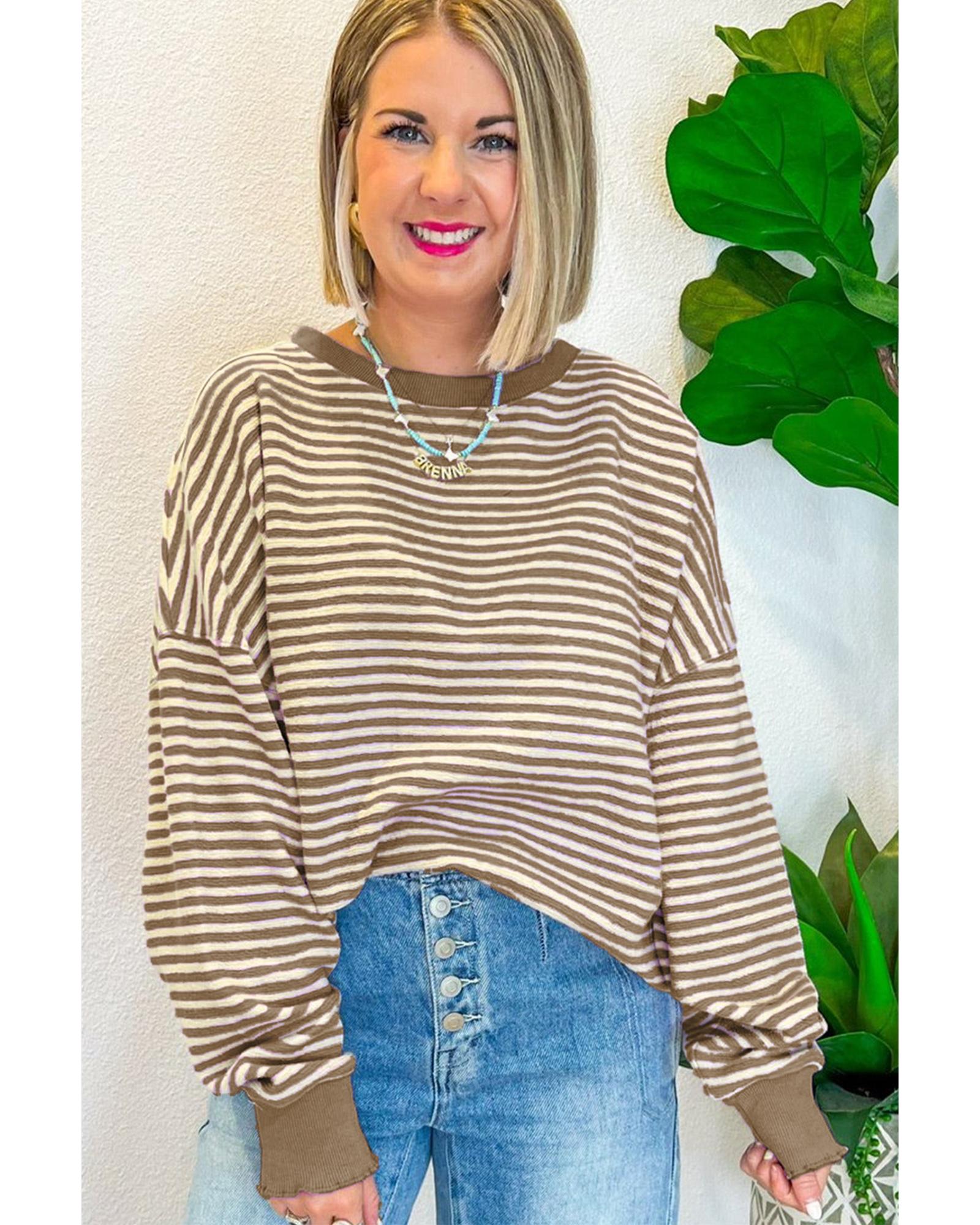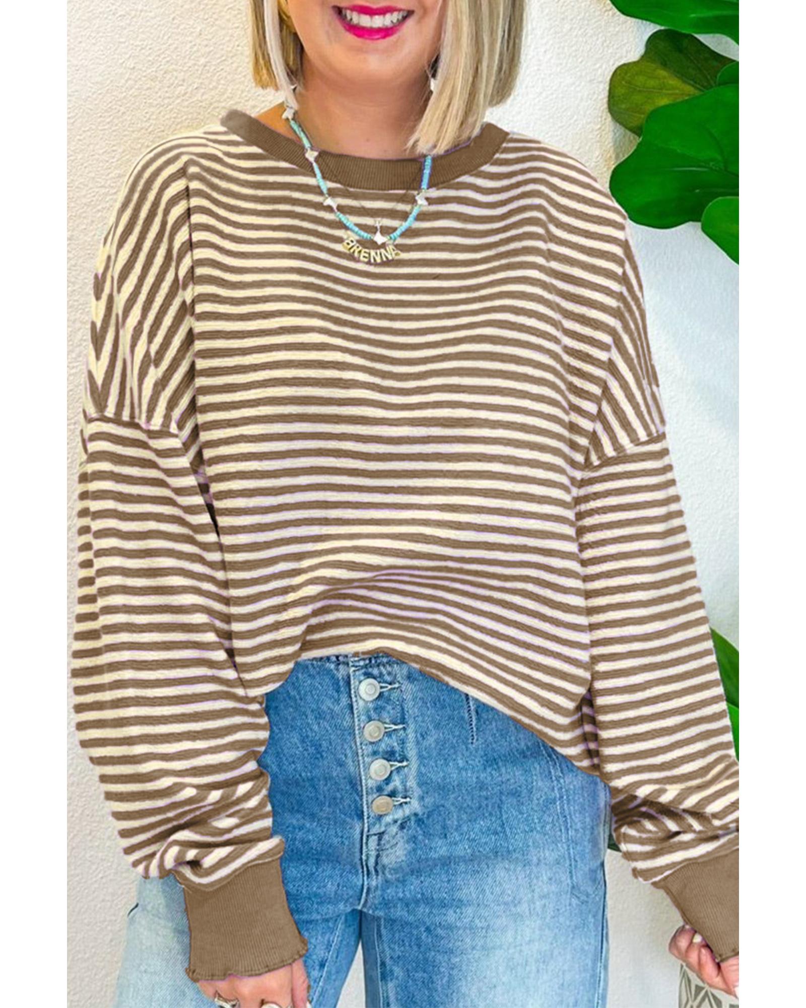 Brown Stripe Loose Drop Shoulder Long Sleeve Top – 2XL
