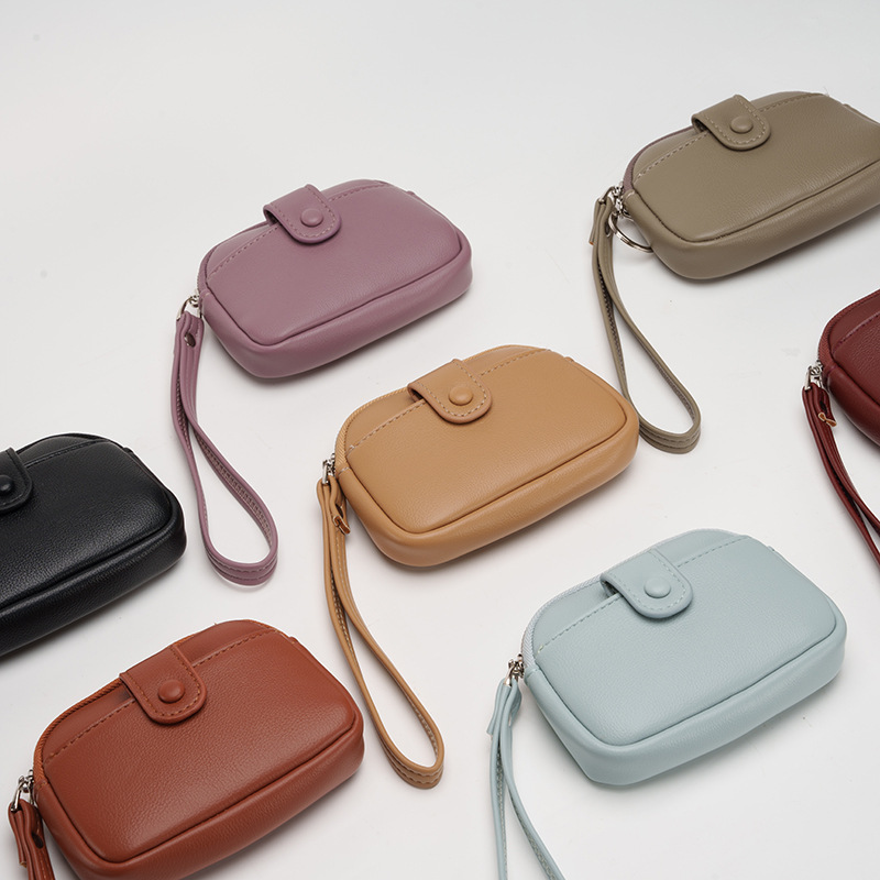- Features: Main zippered compartment for coins, cash, and tickets; external snap button pocket for quick access to cards; internal key ring for secure key storage; detachable wrist strap for hands-free carrying; high-quality zipper for added security.
