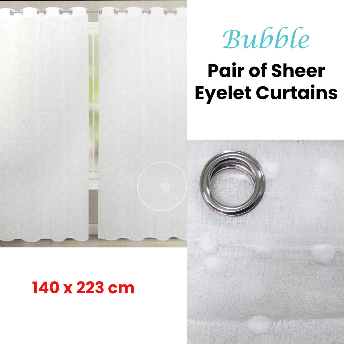 Bubble White Pair of Sheer Eyelet Curtains 140 x 223cm