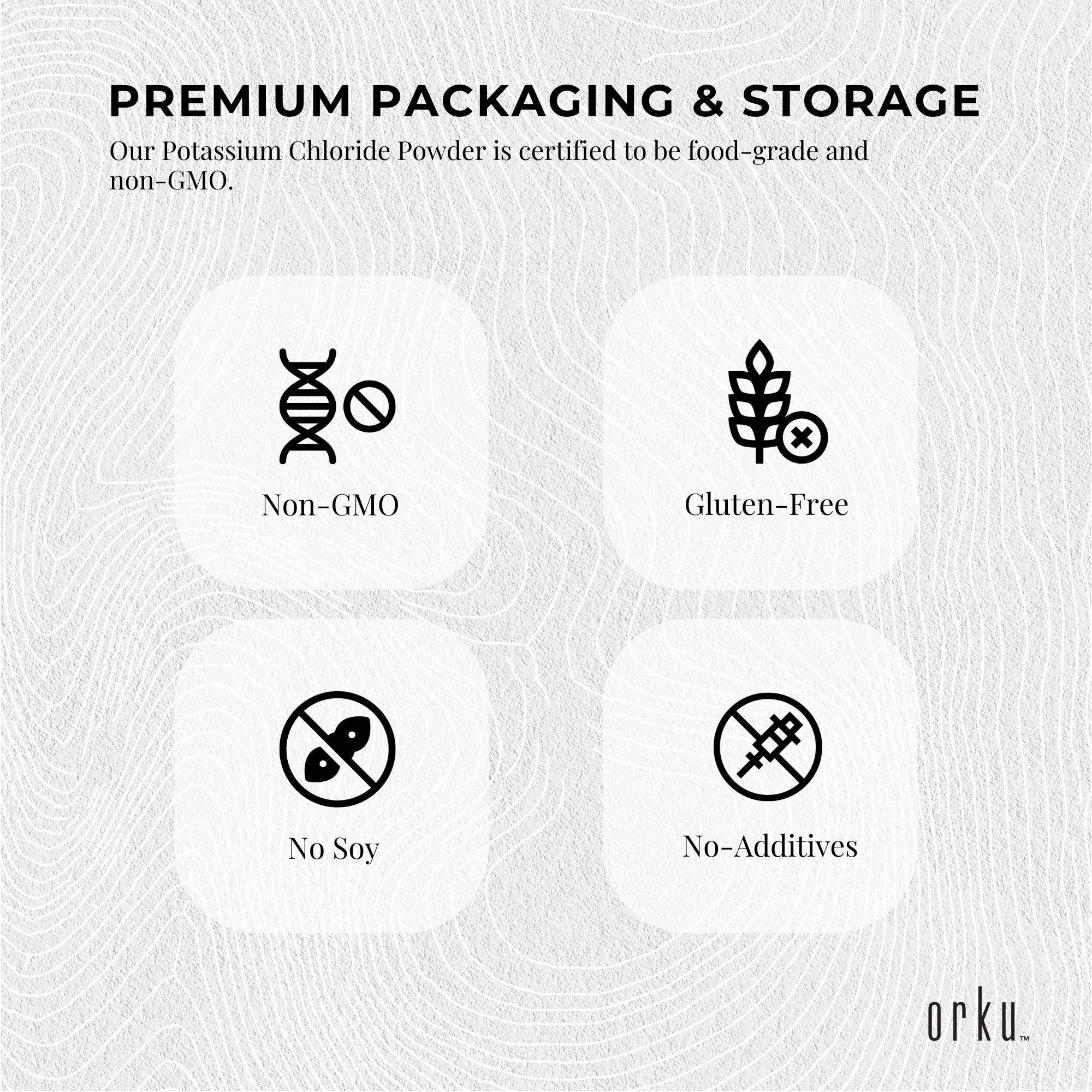 This product is a pure potassium chloride powder suitable for food applications. It is a naturally occurring mineral used primarily to enrich foods with potassium and as a salt substitute to lower sodium intake. The powder is packaged in a resealable container for convenience and freshness.