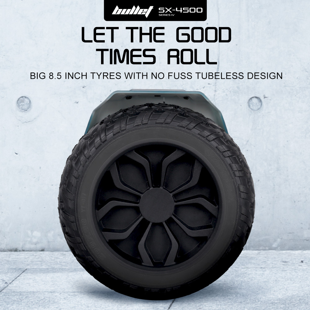 - 8.5-inch rubber tubeless tires for smooth riding over bumps