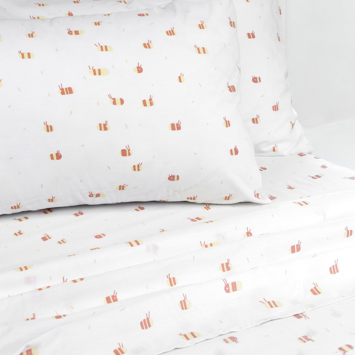 This sheet set features a charming bees print design that adds a playful and adorable touch to a child’s bedroom. Made from a durable and soft polyester cotton blend fabric, it provides comfort and longevity for everyday use.