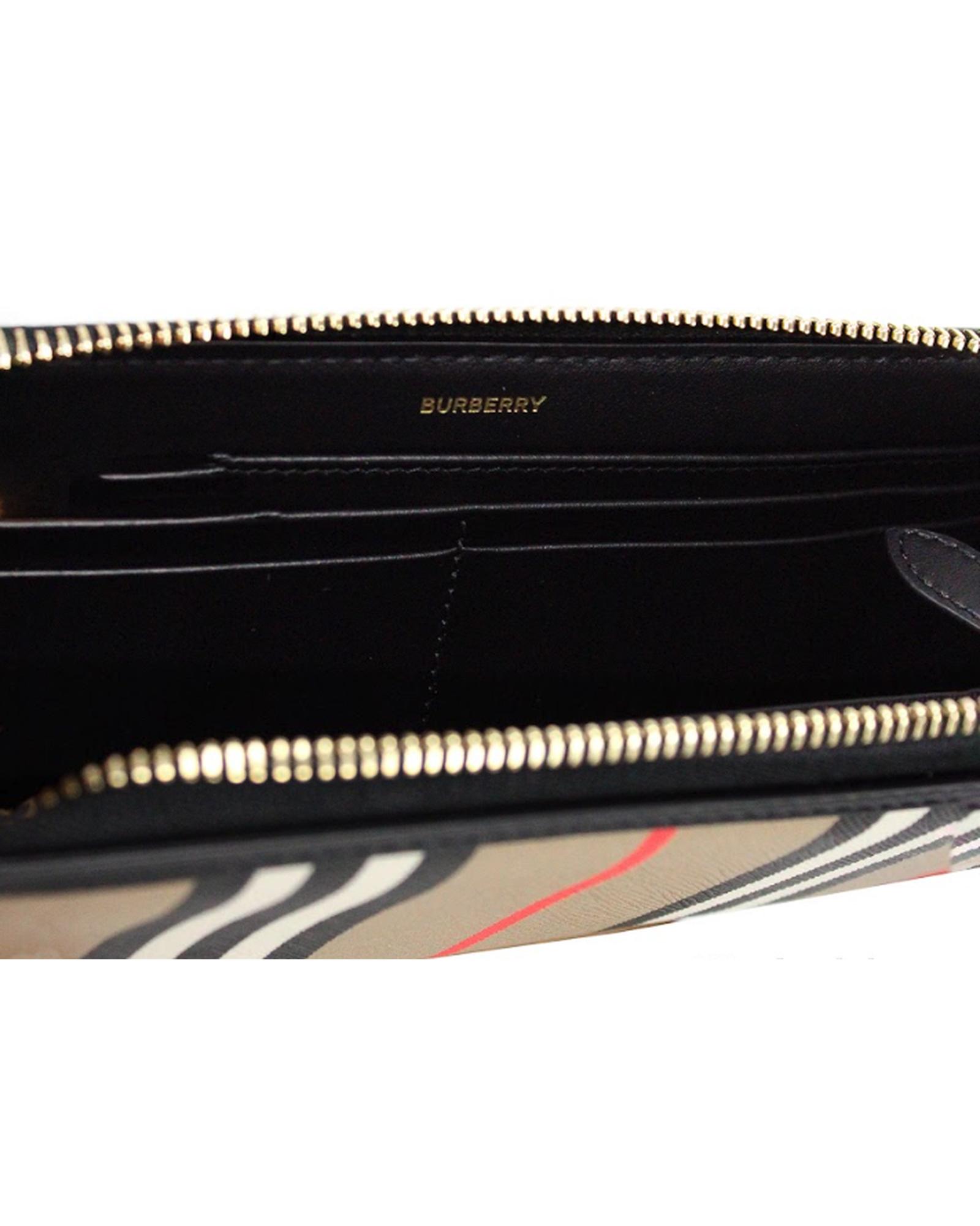 Burberry Women’s Ellerby Black Leather Icon Stripe Canvas Zip Around Continental Wallet – One Size
