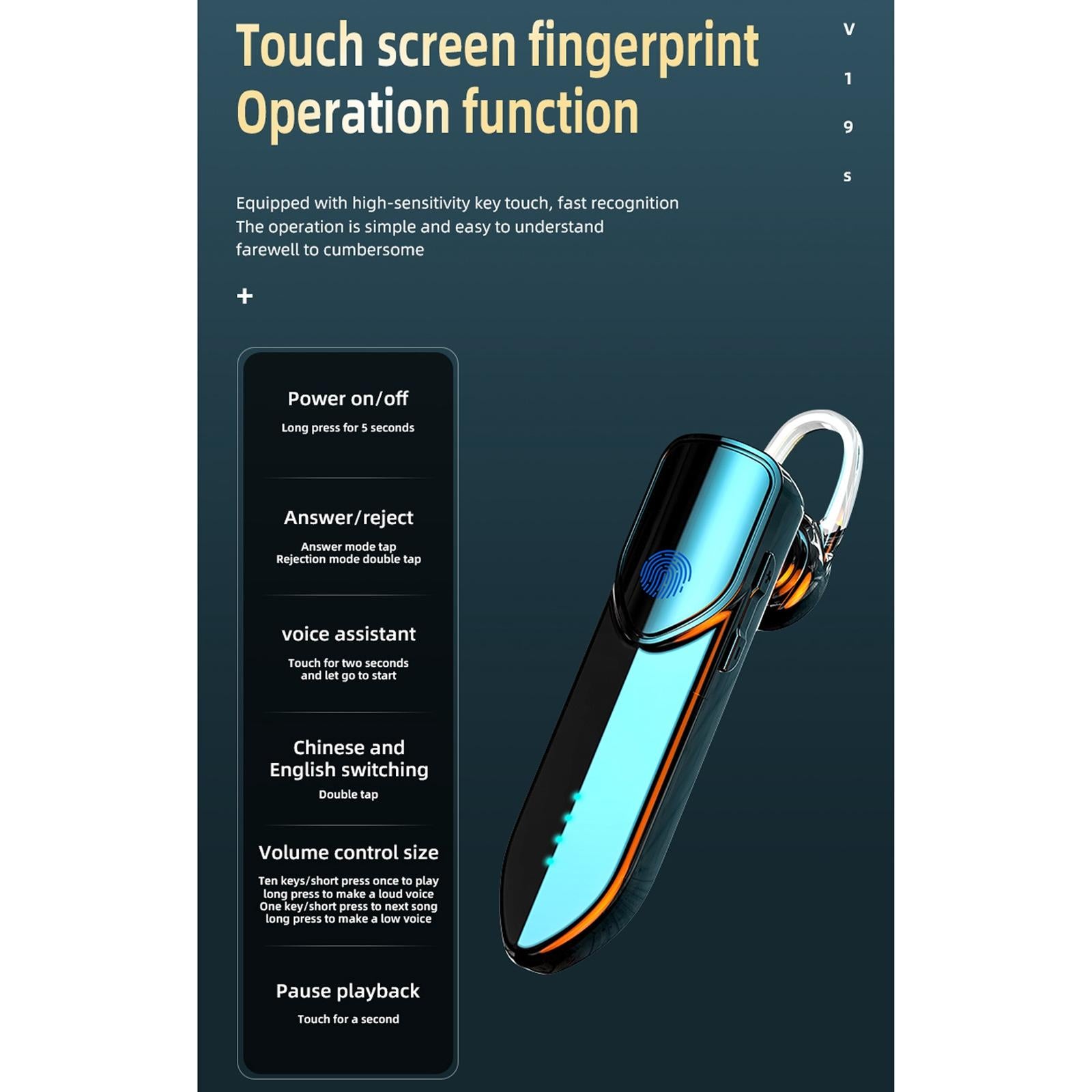 This Bluetooth 5.0 earphone features an ergonomic design for comfortable wear and offers intelligent noise reduction for clear, high-definition calls. It is equipped with fingerprint touch controls for easy operation and has an IPX3 waterproof rating to resist rain and sweat. The device provides convenient access to voice assistants with a single click, making it suitable for daily use and active lifestyles.