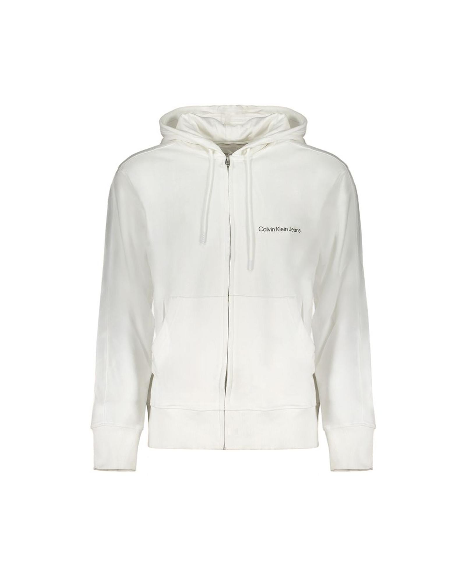 This men’s white cotton sweater features a comfortable design with long sleeves and a hood. It is crafted with a brushed texture for added comfort and style, and includes practical details such as two central pockets and a zip closure. The front displays a print and logo design, making it a versatile addition to any wardrobe. Made from high-quality cotton, it offers both comfort and durability.