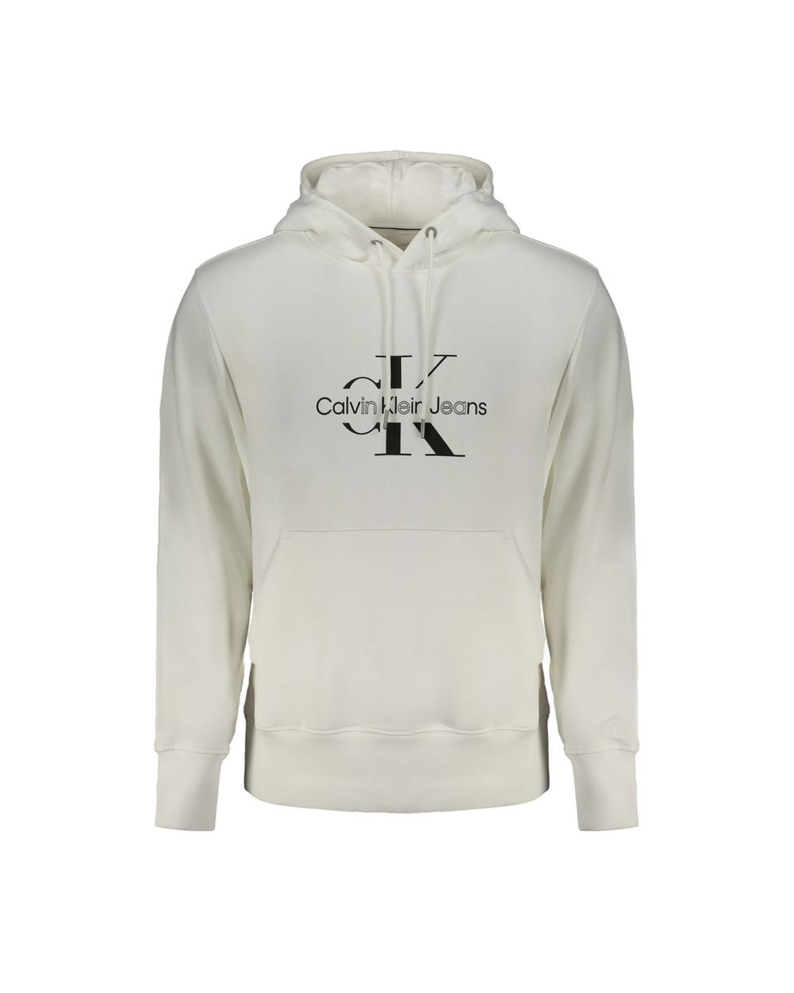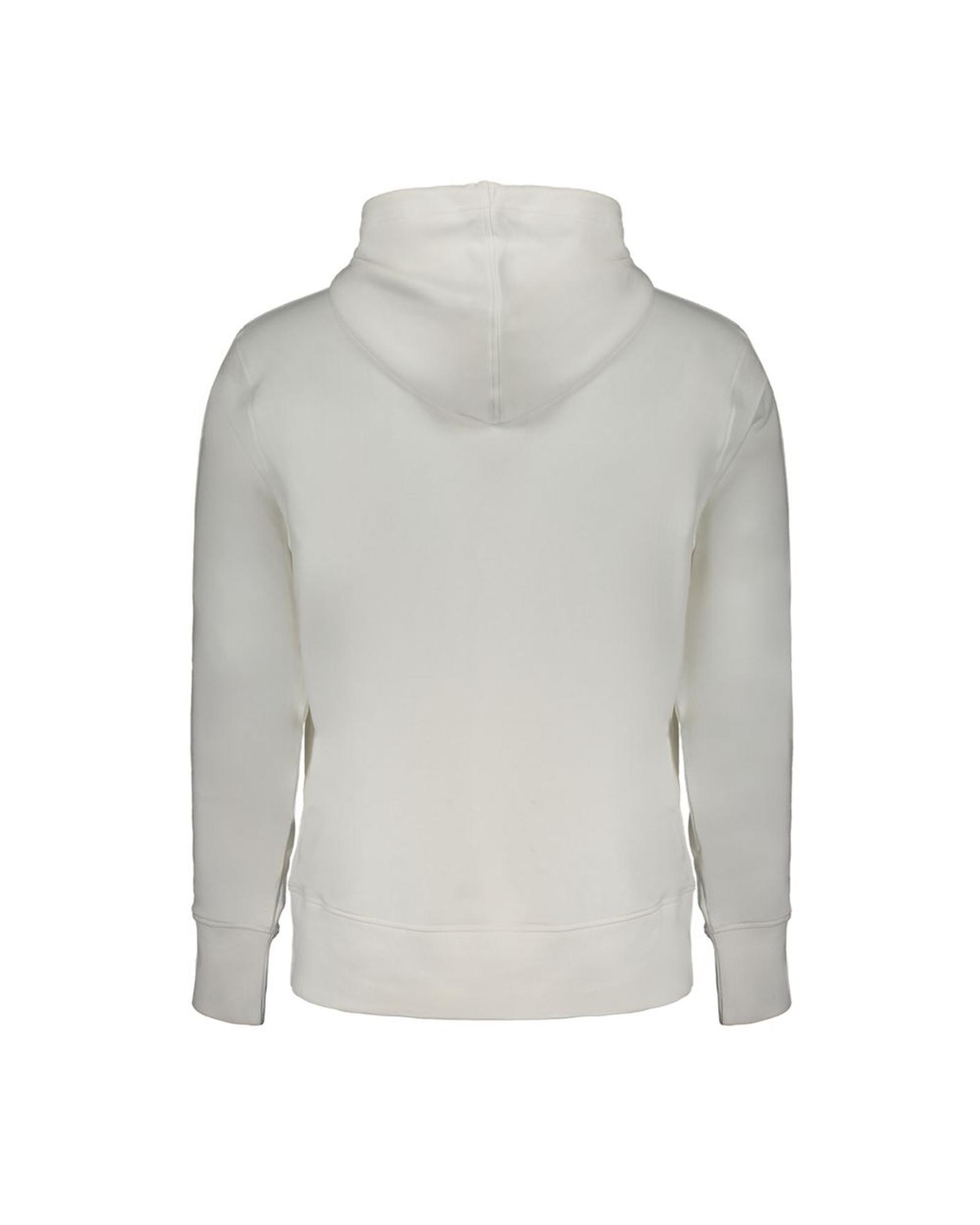 This men’s white cotton sweater features a comfortable and stylish design, perfect for casual wear. It is made from soft, brushed material and includes a hood for added versatility. The sweater is designed with a central pocket and a unique print along with a logo for distinctive style. Crafted from high-quality regenerative cotton, it offers both comfort and sustainability.