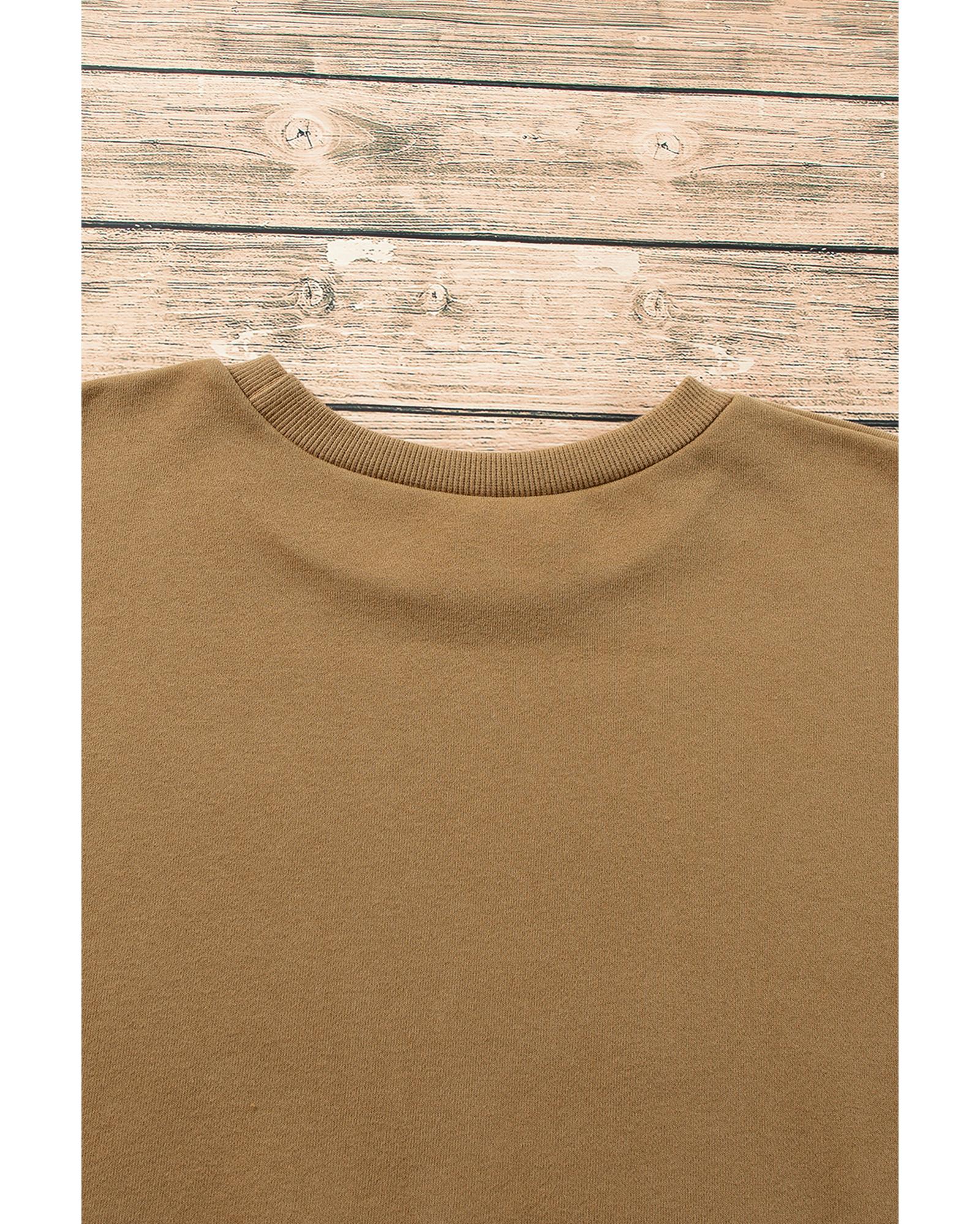 Camel Solid Fleece Lined Drop Shoulder High Low Sweatshirt – XL
