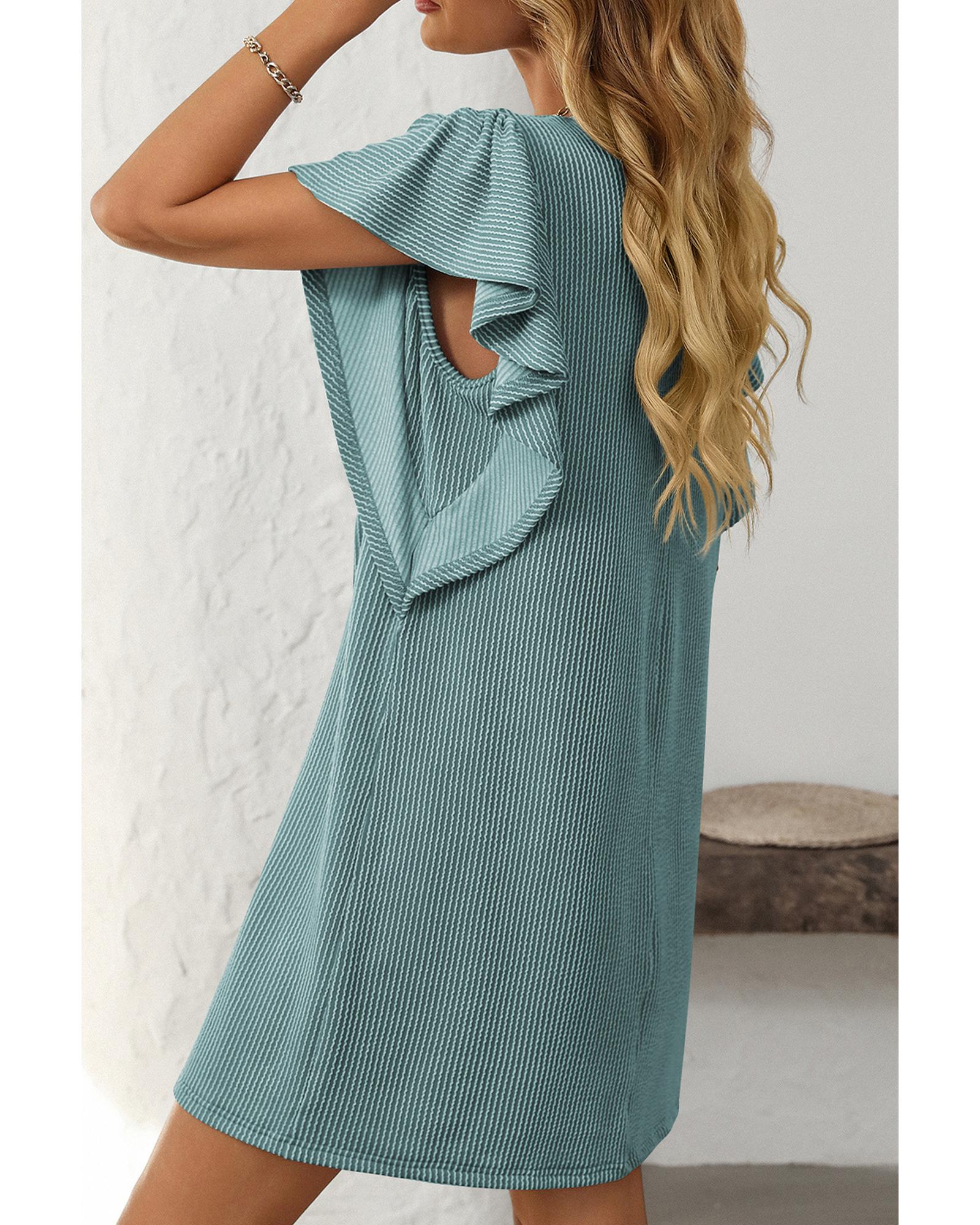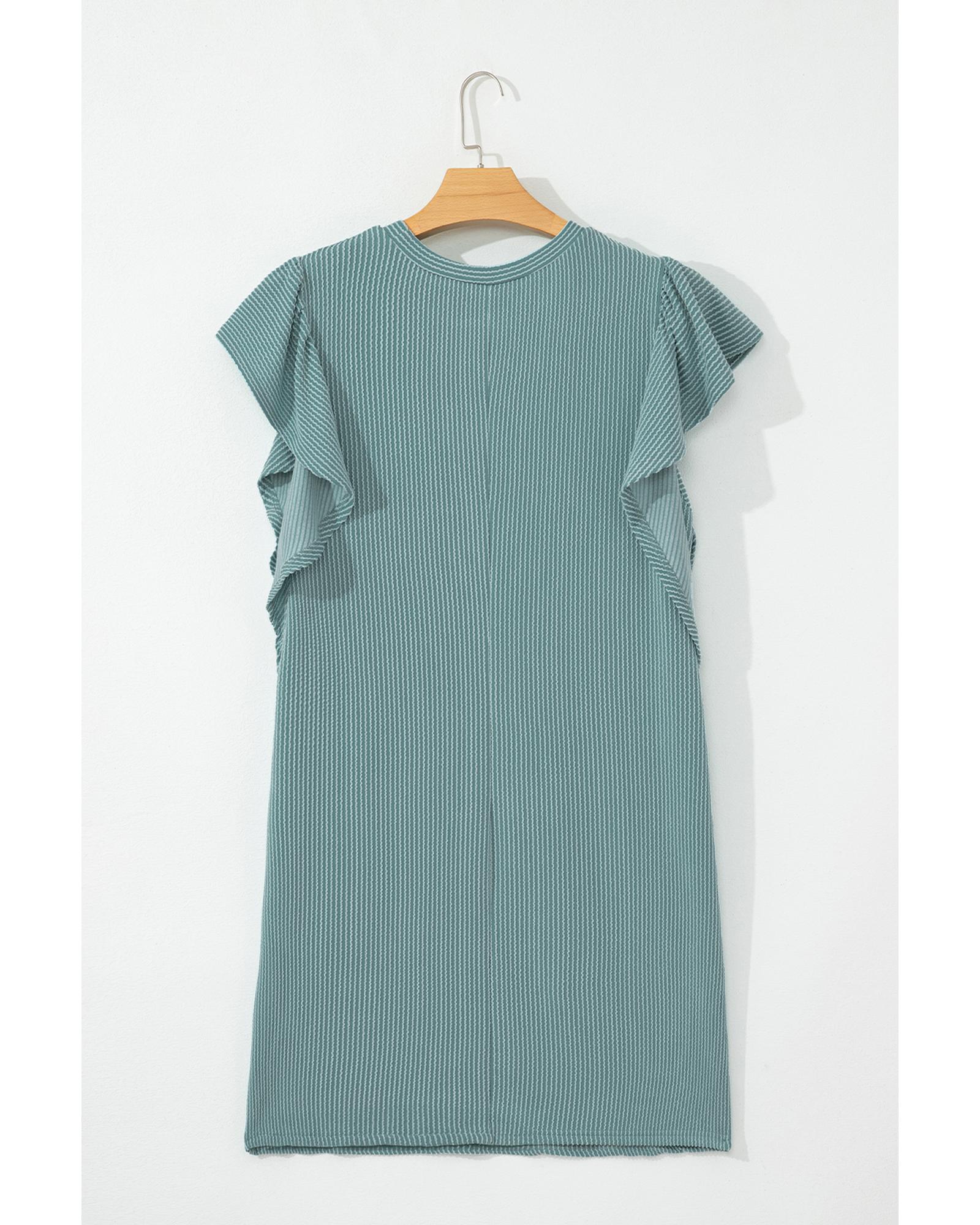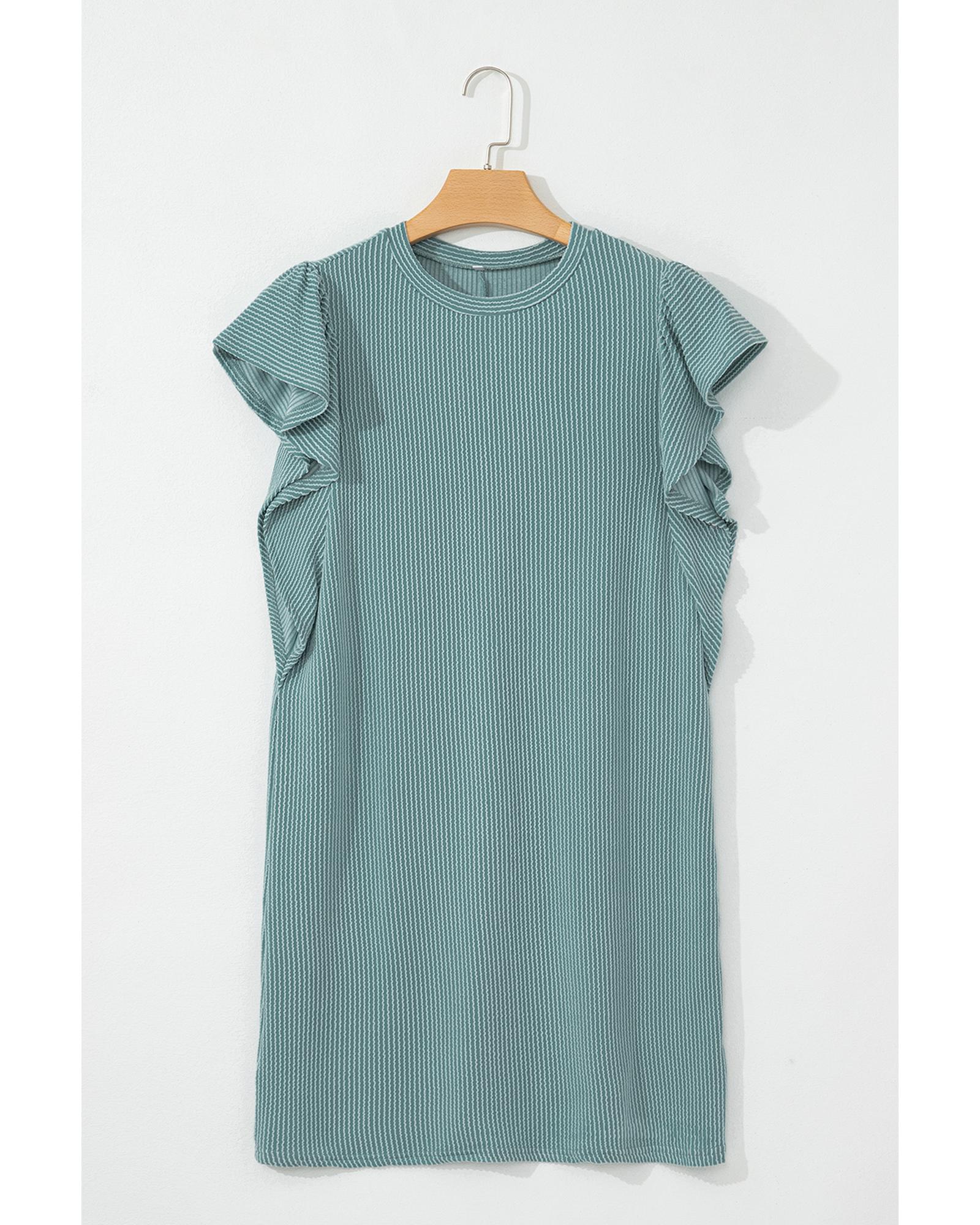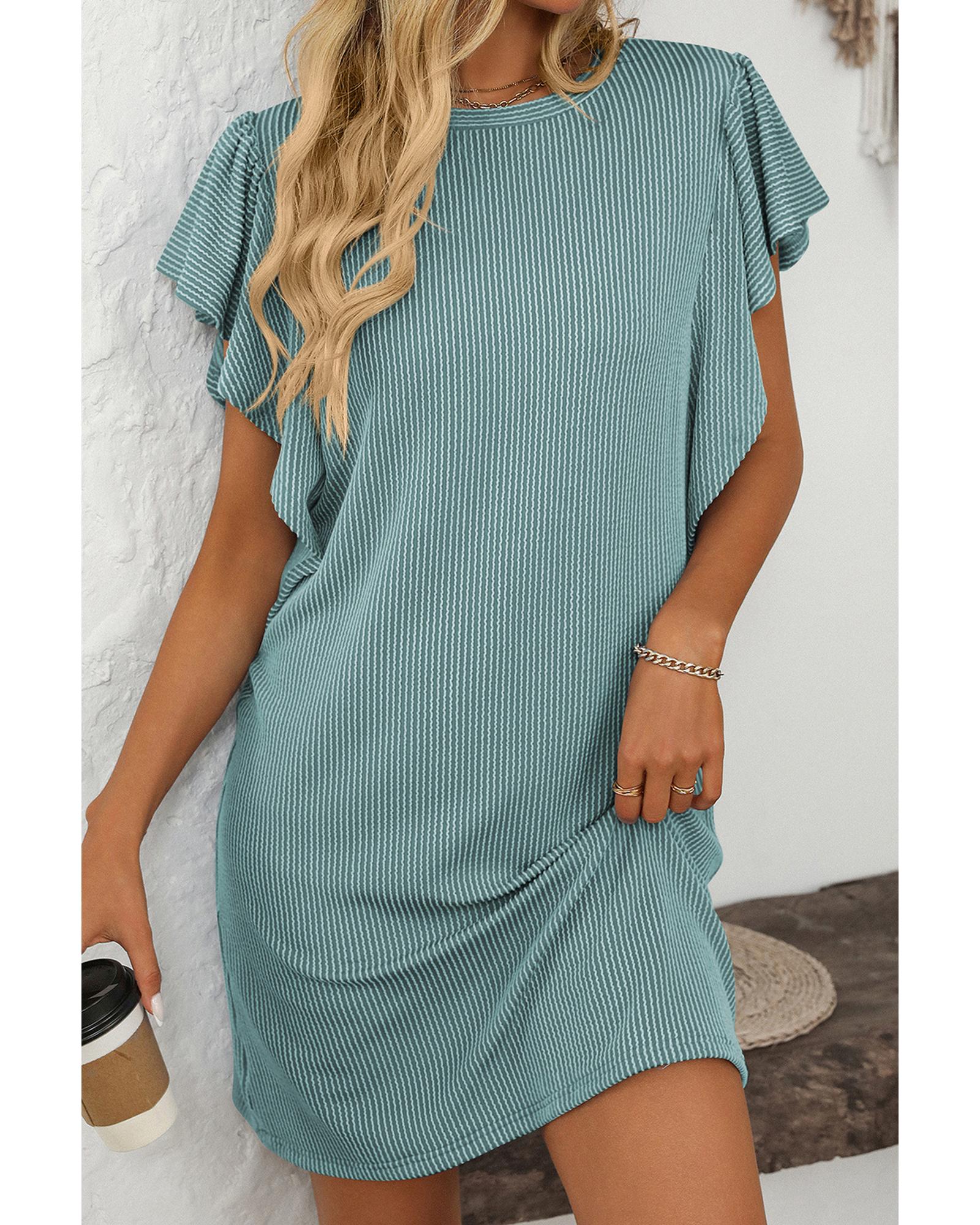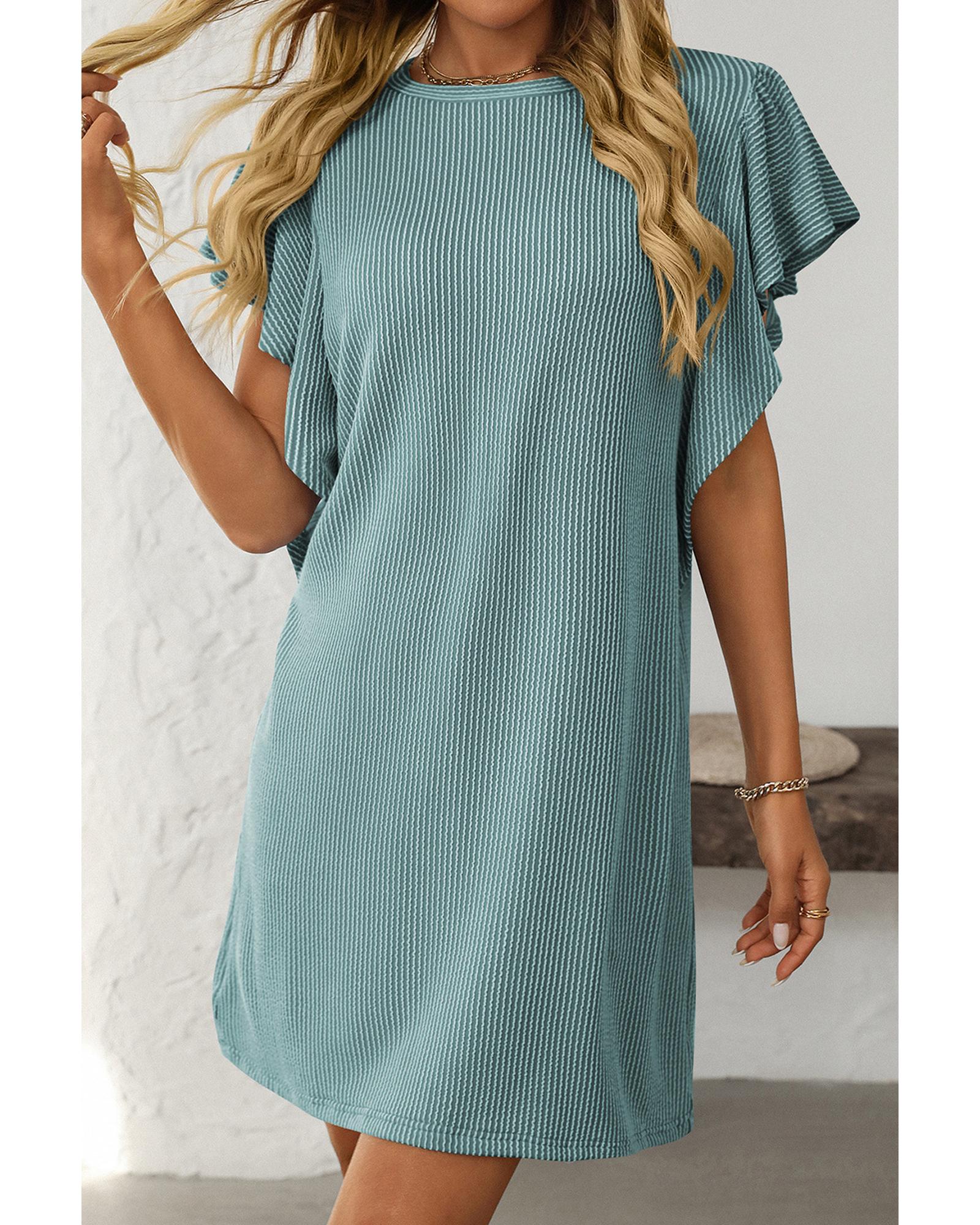 This corded shift dress features a classic crew neck design combined with charming ruffle sleeves, offering a feminine and elegant look. Made from high-quality polyester, it provides a comfortable fit and a sophisticated appearance suitable for various occasions.