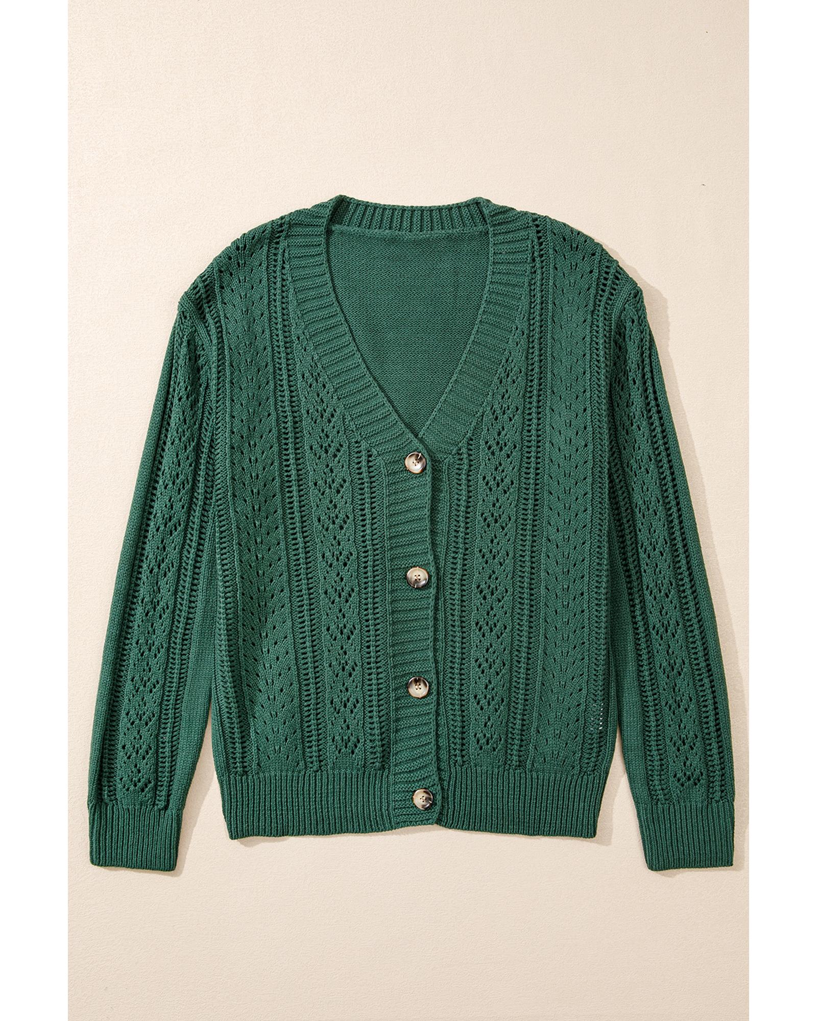 This open knit drop shoulder sweater cardigan combines a trendy fitted look with versatile styling, making it suitable for various occasions and easy to layer. Its soft and cozy fabric ensures comfort throughout the day, while the chic slouchy silhouette adds a modern touch to any outfit.