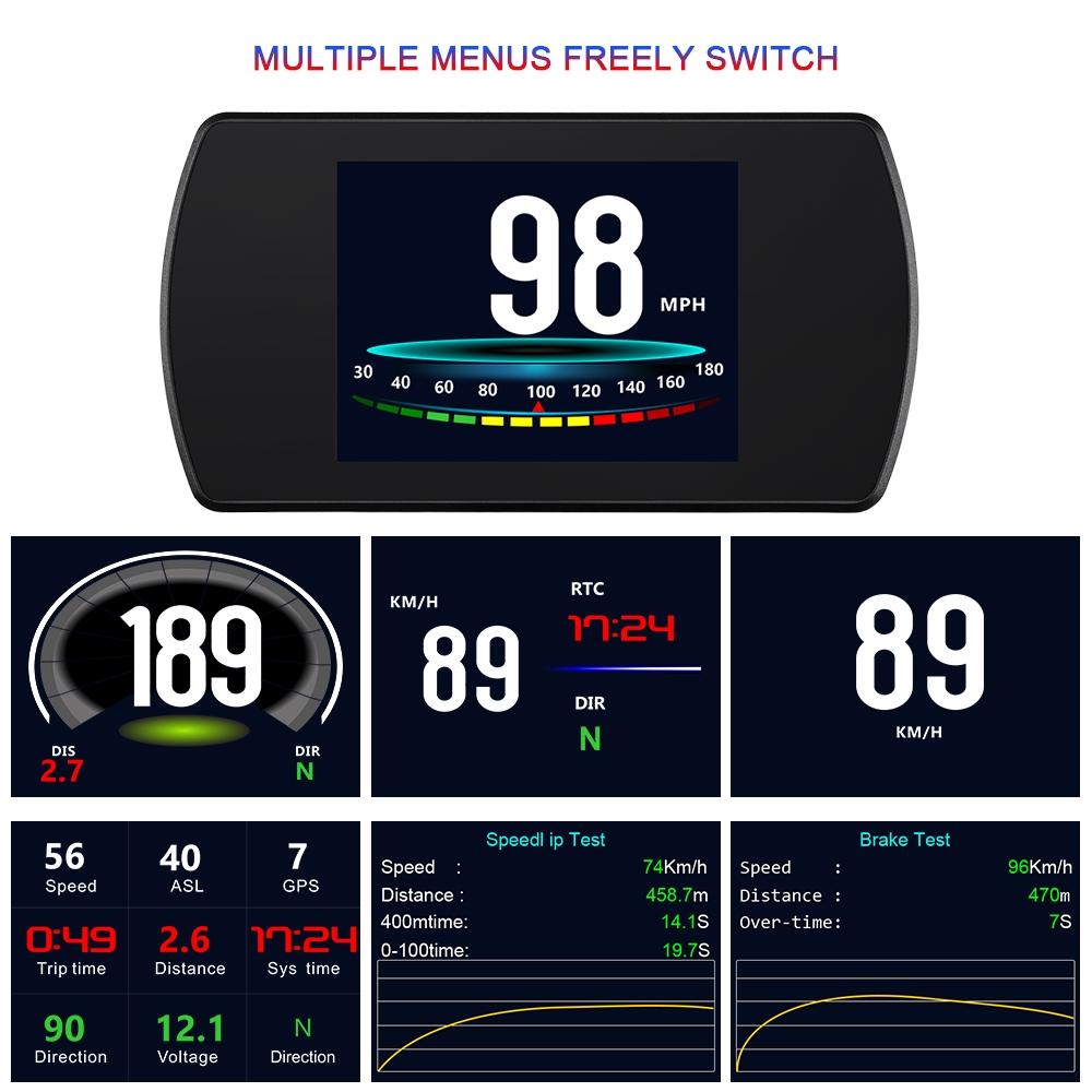 This car HUD display provides a clear and multi-functional digital readout for drivers, offering essential information such as speed, voltage, altitude, and driving distance. Its versatile features include customizable display options and unit conversions, enhancing driving safety and convenience.