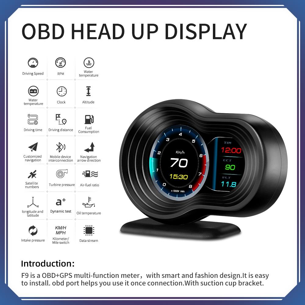 - Displays vehicle speed, RPM, water temperature, voltage, fuel consumption, driving distance, driving time, oil temperature, and more in OBD mode.
