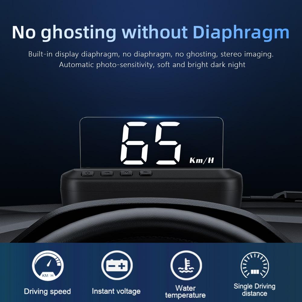 This car head-up display (HUD) provides essential driving information directly on your windshield, enhancing safety and convenience. It displays real-time data such as speed, engine RPM, water temperature, and voltage, while offering alerts for fatigue driving and engine errors. The device automatically adjusts its brightness based on ambient light conditions and supports both MPH and KM/H units for versatile use.