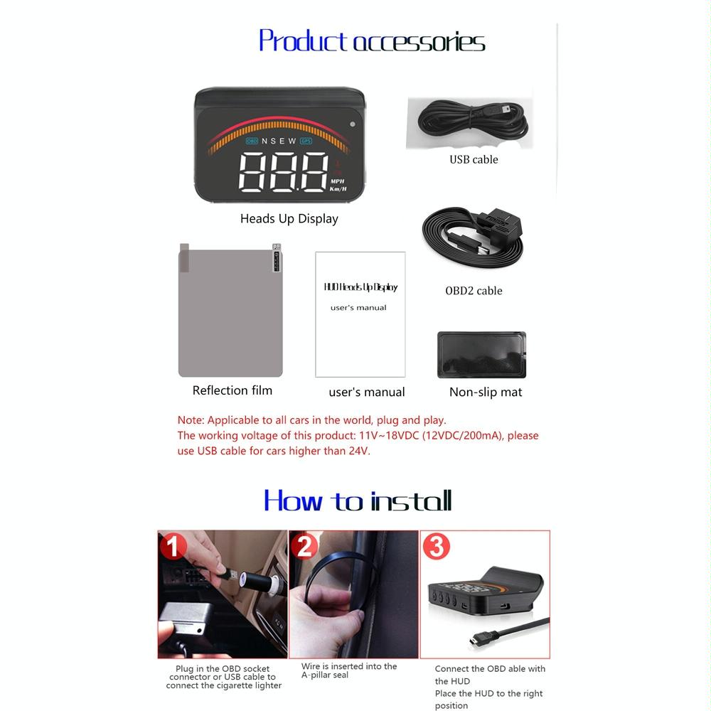 - Package includes one car head-up display with speed, temperature, and alarm functions