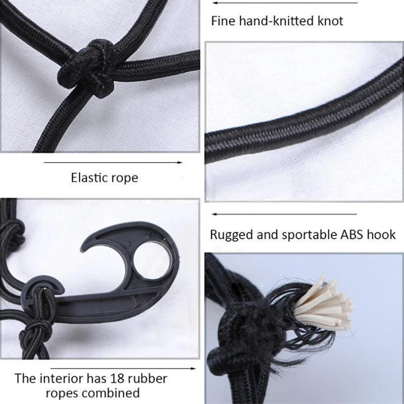 This car roof top rack basket luggage bungee net is designed to secure luggage and goods on roof baskets, roof bars, roof racks, car boots, trailers, and other similar surfaces. It features multiple attachment points with 12 hooks, providing a secure and versatile solution for cargo transportation.