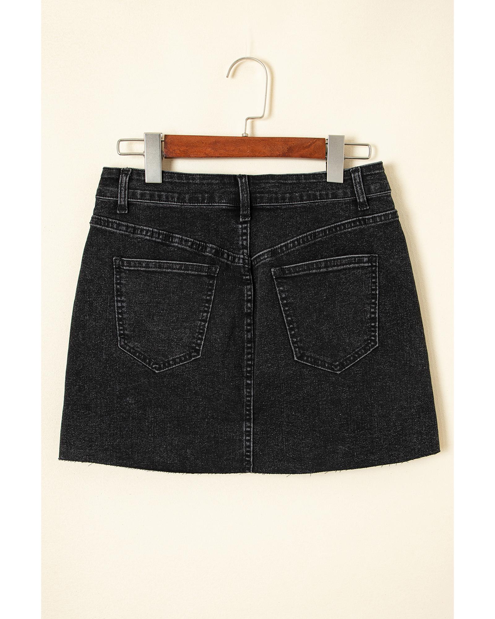 This denim mini skirt features a trendy mineral wash finish and a distressed raw hem, offering a stylish and edgy look. Its versatile mini length is ideal for showcasing long legs, while the classic denim fabric ensures comfort and durability. Designed with high elasticity, it provides a comfortable fit for various body types.