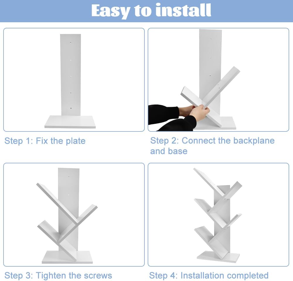 This 5-tier tree bookshelf features a modern, tree-shaped design that adds an elegant touch to any home or office. Made from high-density engineered wood, it offers durable support while saving space with its compact vertical layout. The bookshelf is easy to assemble, maintain, and provides a stable and safe storage solution suitable for households with children or pets.