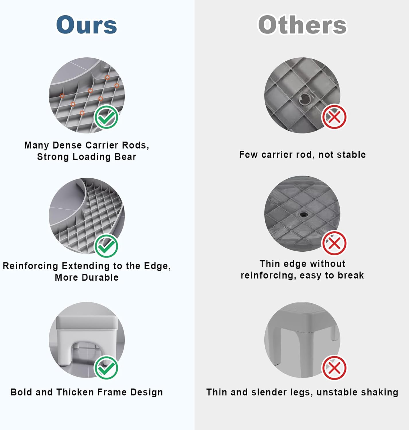 - Constructed from thick, odorless plastic with reinforced support bars for durability