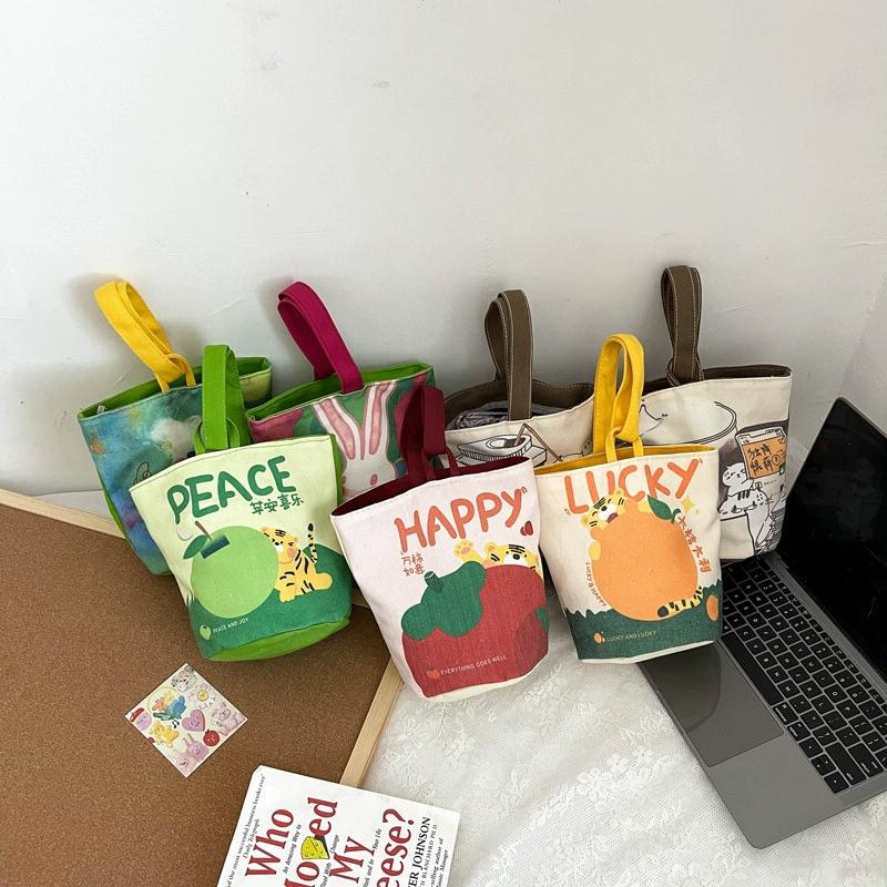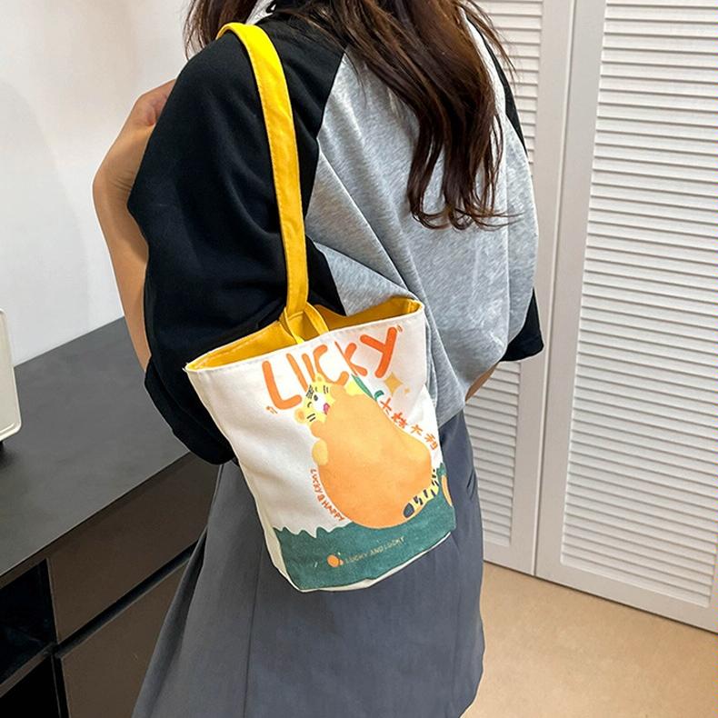 This cartoon-style handbag features a cute and portable design suitable for outdoor use. Crafted from durable canvas fabric, it offers a spacious interior and a wide, comfortable handle. Available in various styles, it caters to different personal preferences for daily activities.