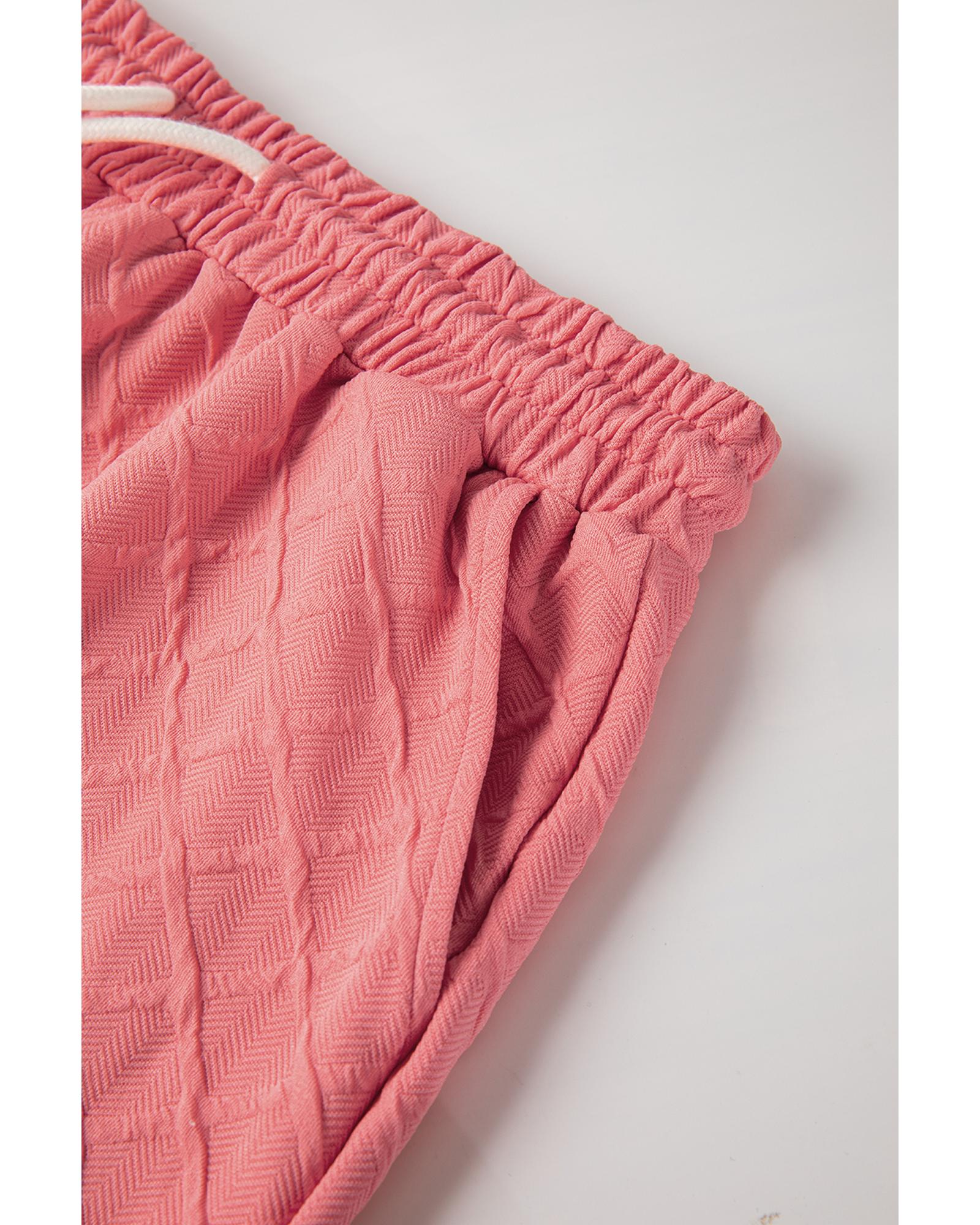 This casual checkered textured tee and drawstring shorts set offers a trendy and comfortable look suitable for various occasions. Designed with a modern twist, it combines style and practicality for everyday wear.