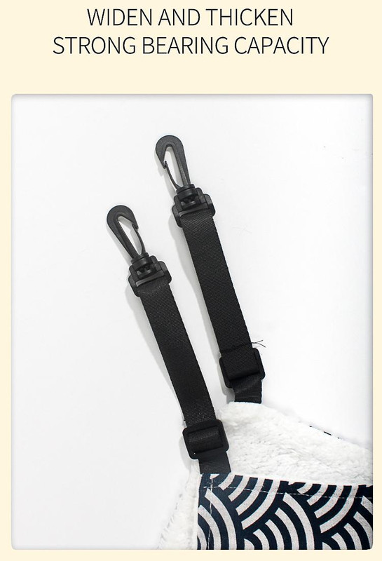 This adjustable double-sided pet swing bed provides a comfortable and versatile resting spot for your cat. It features a soft plush side for warmth and a breathable fabric side for cooling, suitable for all seasons. Easy to install with adjustable hooks, it can be attached inside cages, on cat trees, or other surfaces, offering a secure and elevated lounging area for your pet.