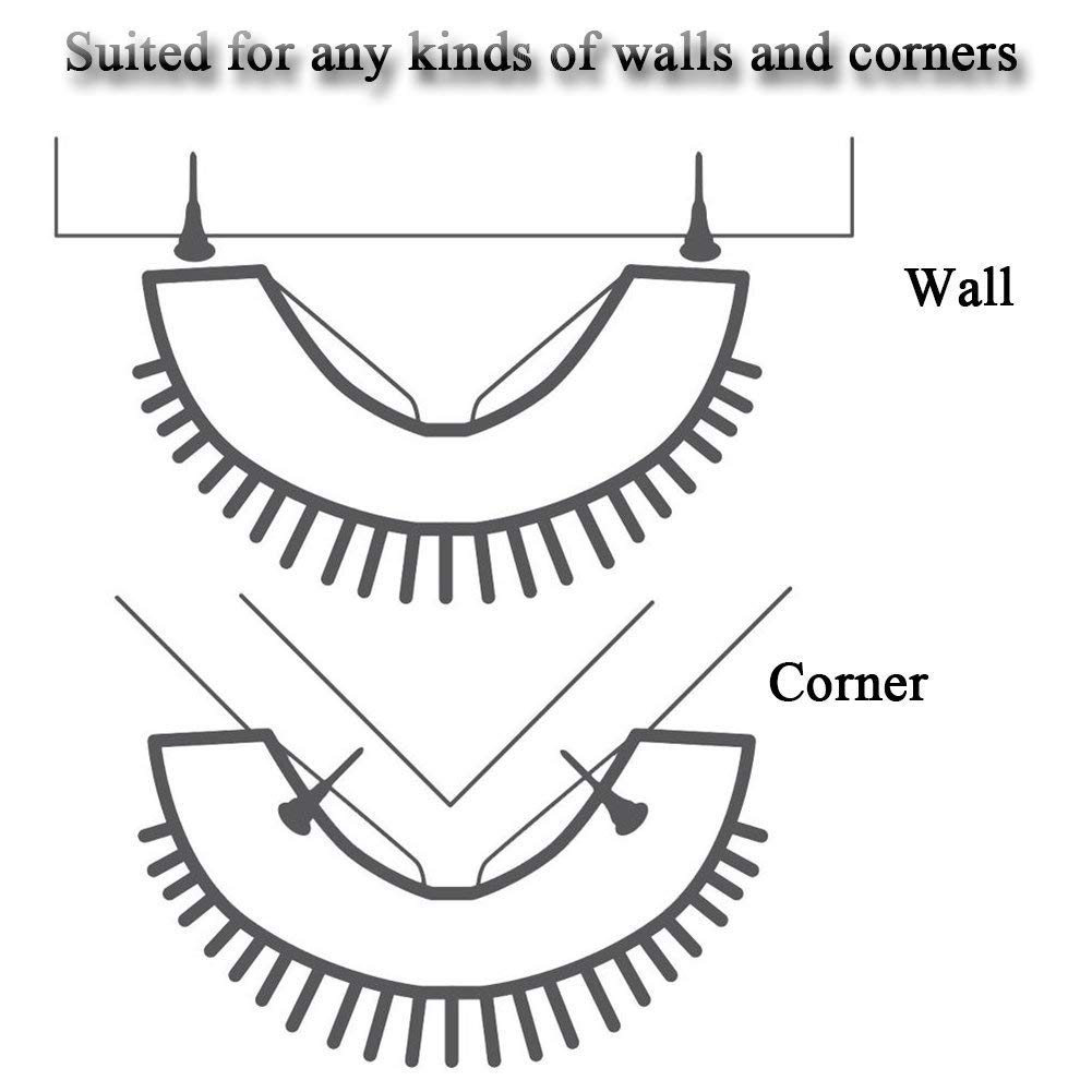 - Easy to install on flat walls or corner surfaces using included screws and adhesive strips