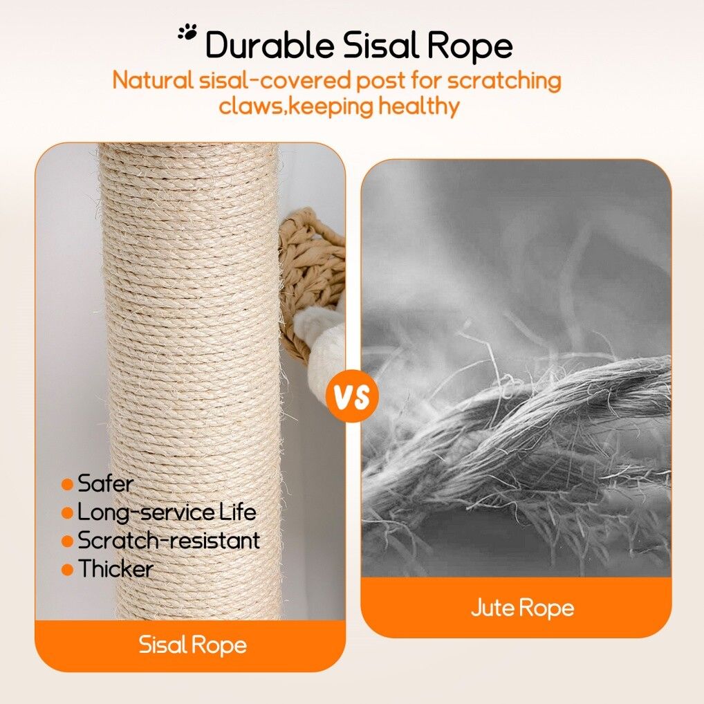 - Constructed with durable materials and pet-safe sisal rope for scratching.