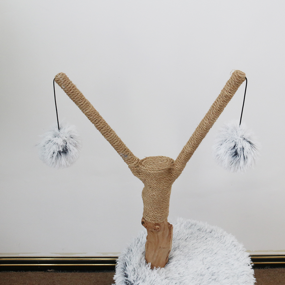 - Includes a plush resting platform, scratching posts, and hanging toys