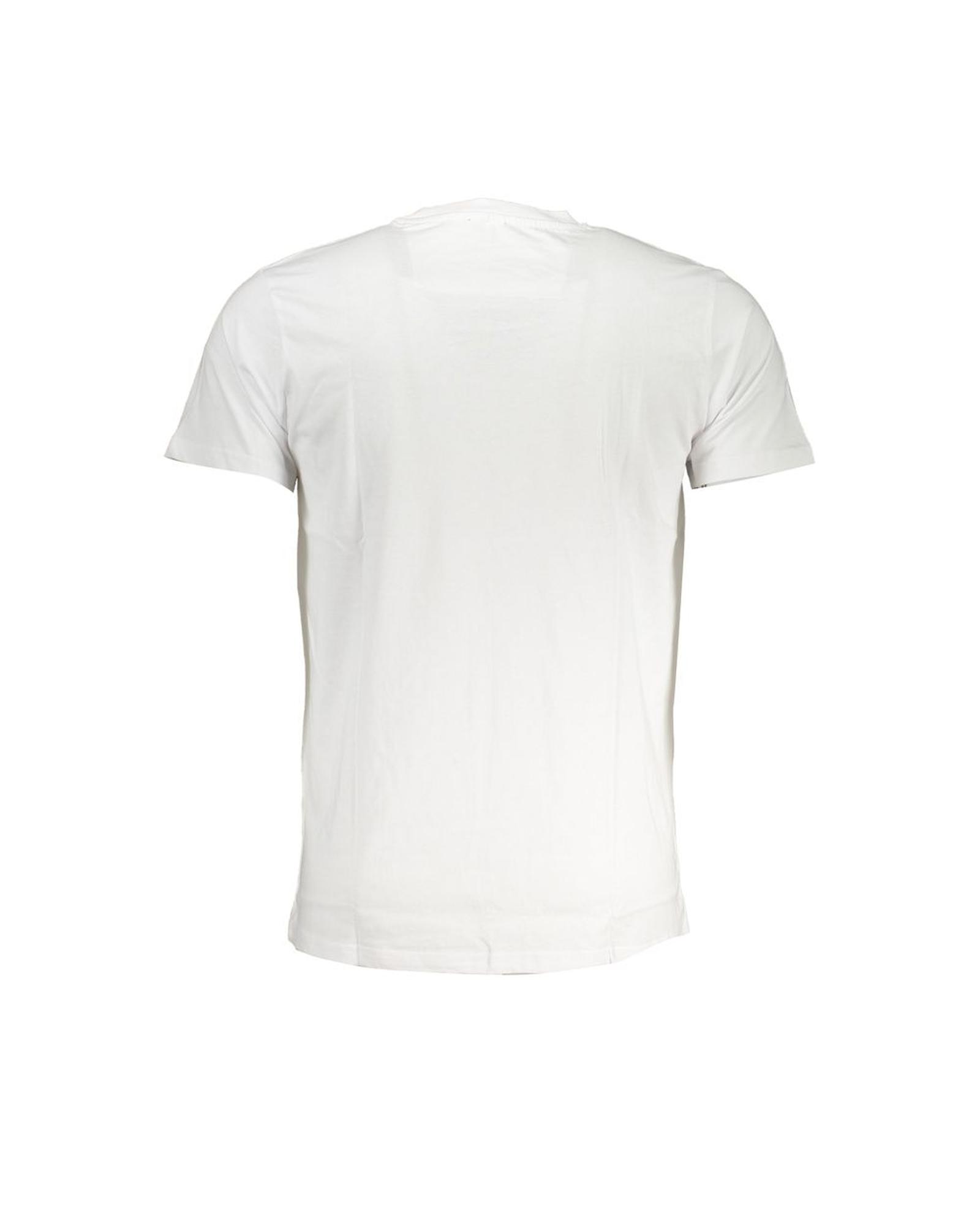 This men’s white cotton T-shirt features a classic design with short sleeves and a crew neck. It is comfortable and suitable for everyday wear, offering a stylish look with a printed logo on the front. Made from 100% cotton, it provides breathability and ease of movement.